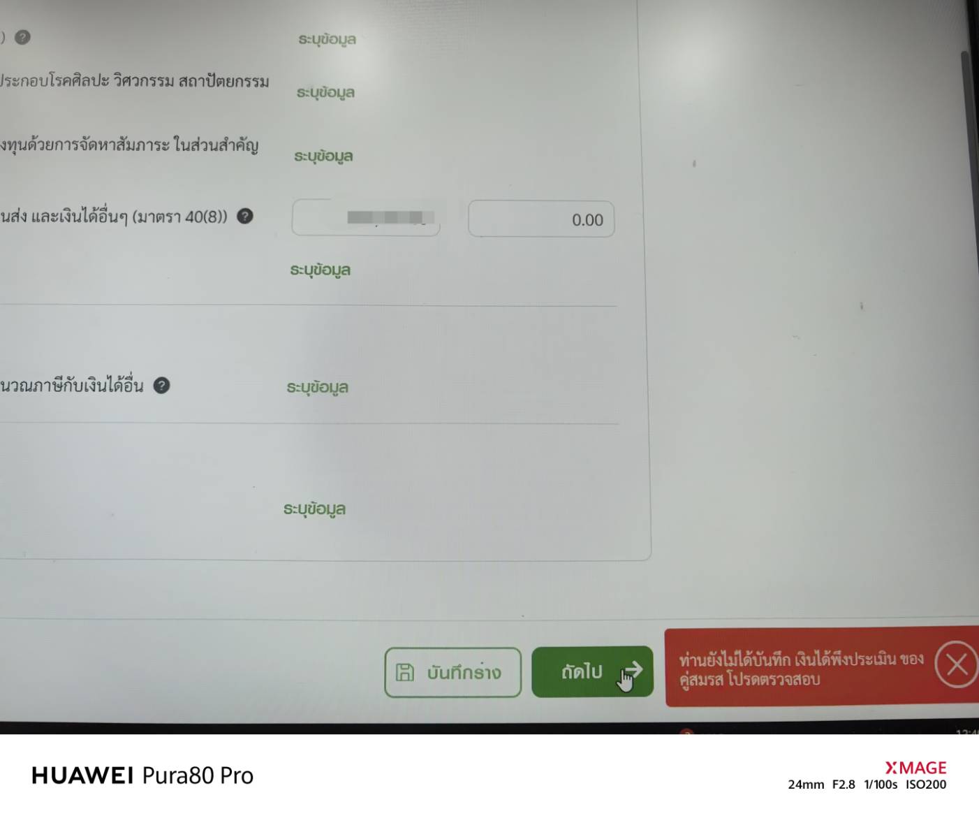 พอใส่ตัวเลขรายได้มาตรา 40(8) กดบันทึกร่าง กด ถัดไป แล้วขึ้นเตือน ต้องไปแก้ตรงไหนครับ