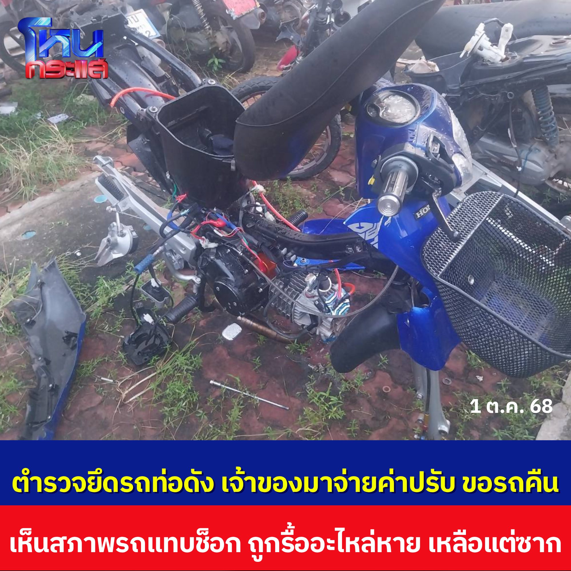 ตร.ตรวจยึดรถมอเตอร์ไซค์ท่อดัง พอมาขอรับรถคืน เจอสภาพรถตัวเอง ถูกถอดชิ้นส่วนไปจะเหลือแต่ซาก