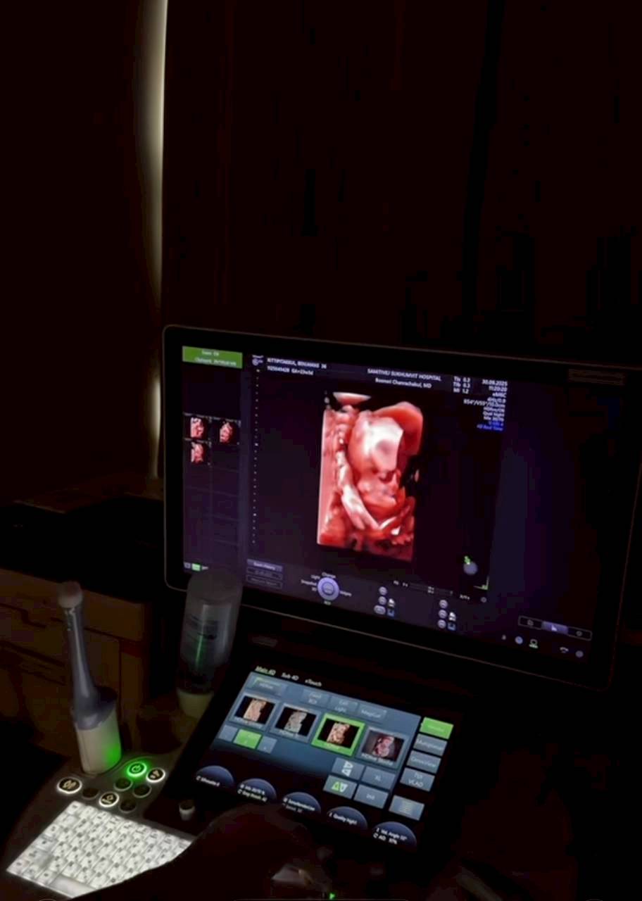 จากนั้น เจมส์ จิรายุ ยังได้เล่าในคลิปวิดีโอ พร้อมเผยภาพอัลตราซาวด์ให้เห็นกันชัดๆ อีกด้วย "มาอัปเดตครรภ์ครับทุกคน ตอนนี้ก็อายุ 23 สัปดาห์กับอีก 3 วัน น้ำหนักเพิ่มมา 10 กิโลกรัม จริงๆ แล้วเพื่อนๆ ยังไม่ได้เห็นท้องแม่เลยนะ เพราะแม่ไม่ค่อยได้ใส่เสื้อเปิดพุงอ่ะ เขิน และนี่เป็นครั้งแรกที่เอามาให้อัปเดตว่าเป็นไง ใหญ่กว่าเดิมเยอะมั้ย ลูกดิ้นบ่อยมาก แต่ถ้ามาเจอคุณหมอ ลูกก็จะไม่ดิ้นแล้ว อย่างตอนนี้ได้เห็นหน้าแล้ว เขาเอามือปิดหน้าไว้ กว่าจะให้เห็นหน้าคือนานมาก หมอเขย่าท้องแล้วเขย่าท้องอีก ตอนนี้เราได้เห็นแล้ว หน้าตาประมาณนี้ น่ารักไหม กว่าจะเห็นได้ในแต่ละมุม ไม่เคยชัดเลยสักครั้ง คุยกับหมอนานมาก บางครั้งเป็นชั่วโมงเลยเหมือนจดเลคเชอร์ตอนเรียน ทุกคนไม่ต้องเป็นห่วง โฟมถามหมดเยอะมากเรื่องข้อมูล"