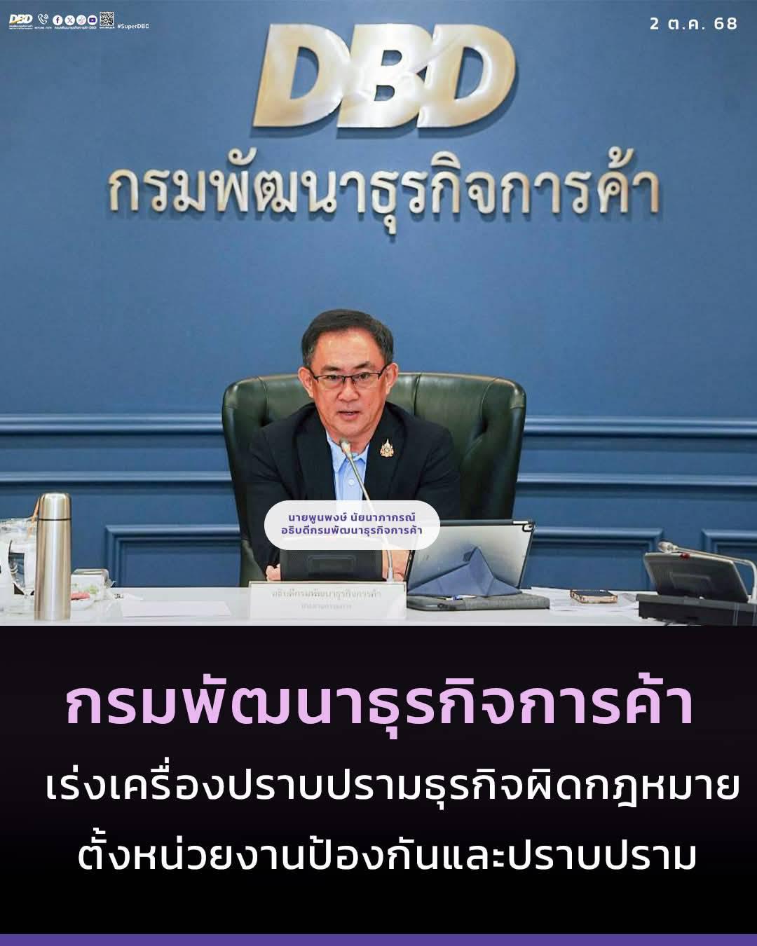 กรมพัฒนาธุรกิจการค้า กระทรวงพาณิชย์ เร่งเครื่องปราบปรามธุรกิจผิดกฎหมาย ตั้งหน่วยงานป้องกันและปราบปราม