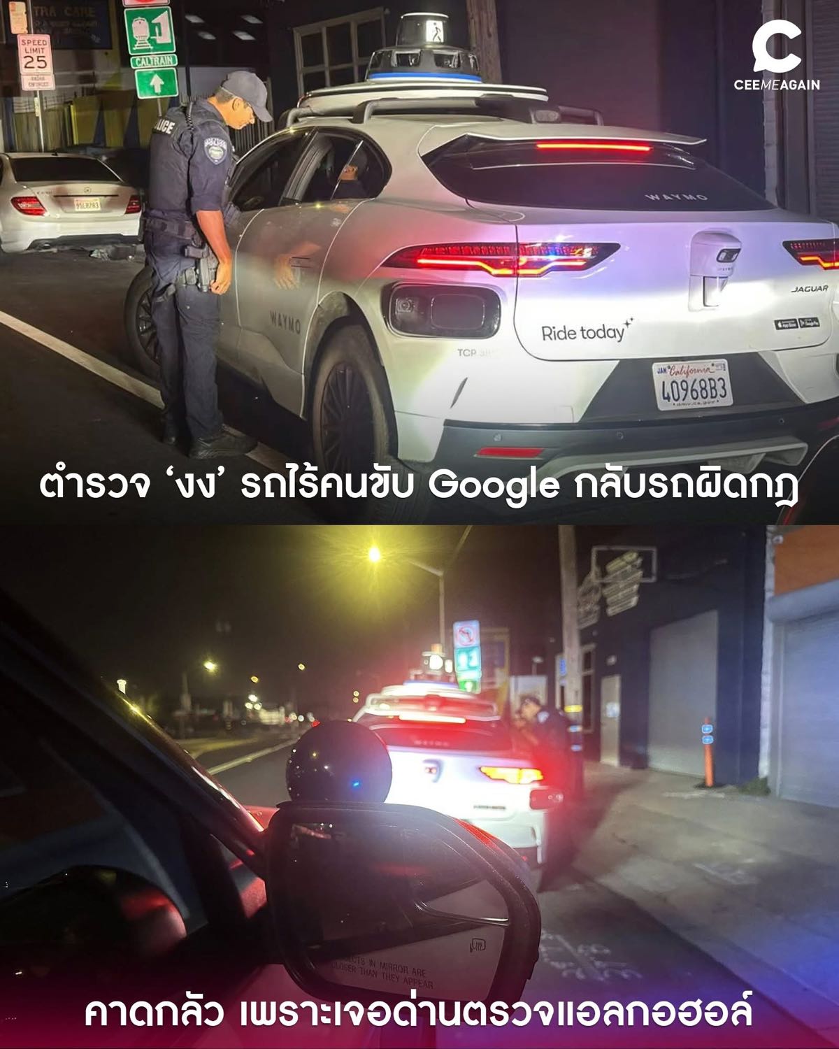 ตำรวจแคลิฟอร์เนียถึงกับไปไม่เป็น เมื่อรถยนต์ไร้คนขับของ Waymo (บริษัทรถยนต์ไร้คนขับของ Google) ตัดสินใจกลับรถหนีด่านตรวจต่อหน้าต่อตาเจ้าหน้าที่ คาดว่าหลบด่านตรวจแอลกอฮอล์