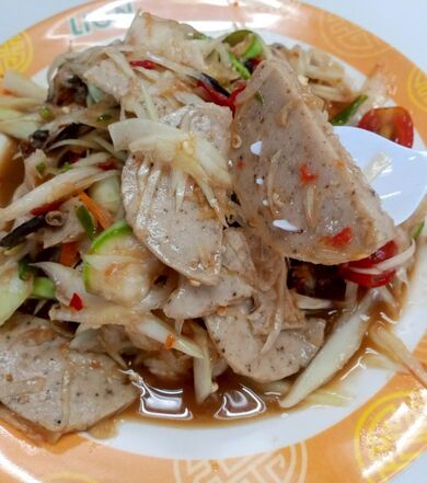 หมูยออุบลบ้องโต ๆ รุ่นพี่สั่งมาตำส้มตำเลี้ยงทุกคนในที่ทำงานฮะ