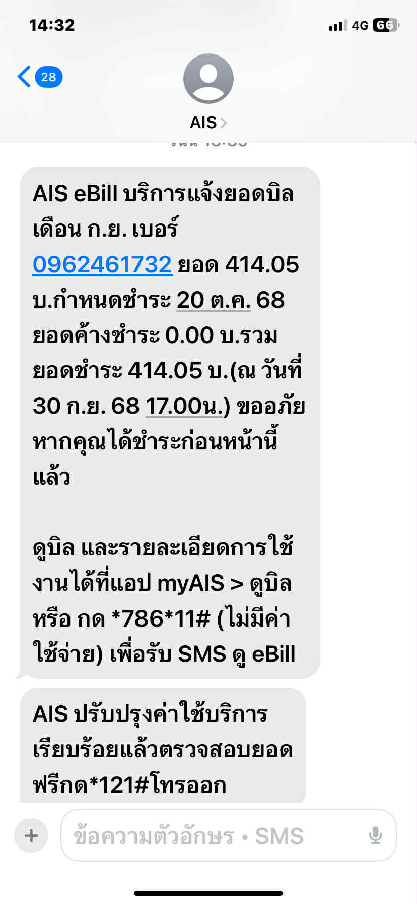 ต้องการยกเลิกแพ็คเกจหลัก ais