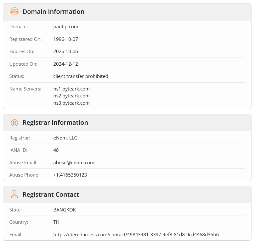 หลักการก็คล้าย ๆ กันทุกโดเมน เดี๋ยวนี้ปิดรายละเอียดส่วนบุคคลกันเกือบหมดแล้ว