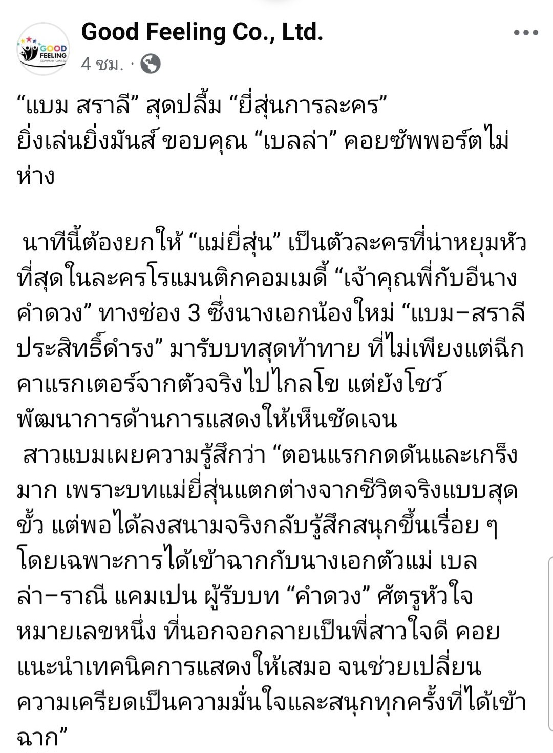 😊 “แบม สราลี” สุดปลื้ม “ยี่สุ่นการละคร” 👋👋🎬 ยิ่งเล่นยิ่งมันส์ ขอบคุณ “เบลล่า” คอยซัพพอร์ตไม่ห่าง
