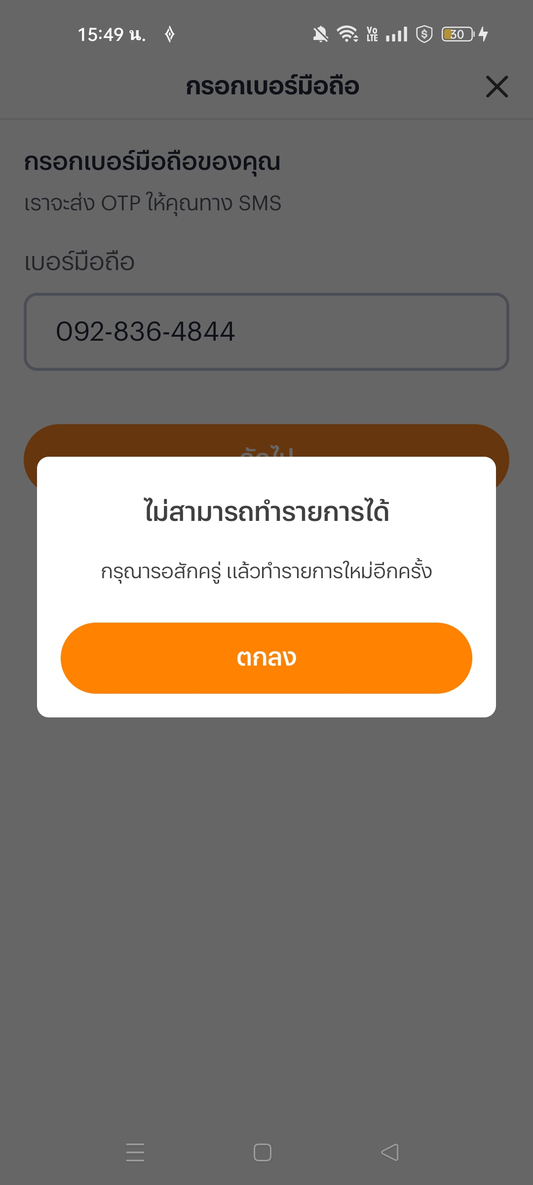 สมัครทรูมันนี่ไม่ได้มันขึ้นข้อความมาแบบนี้ทำไงดีคะ