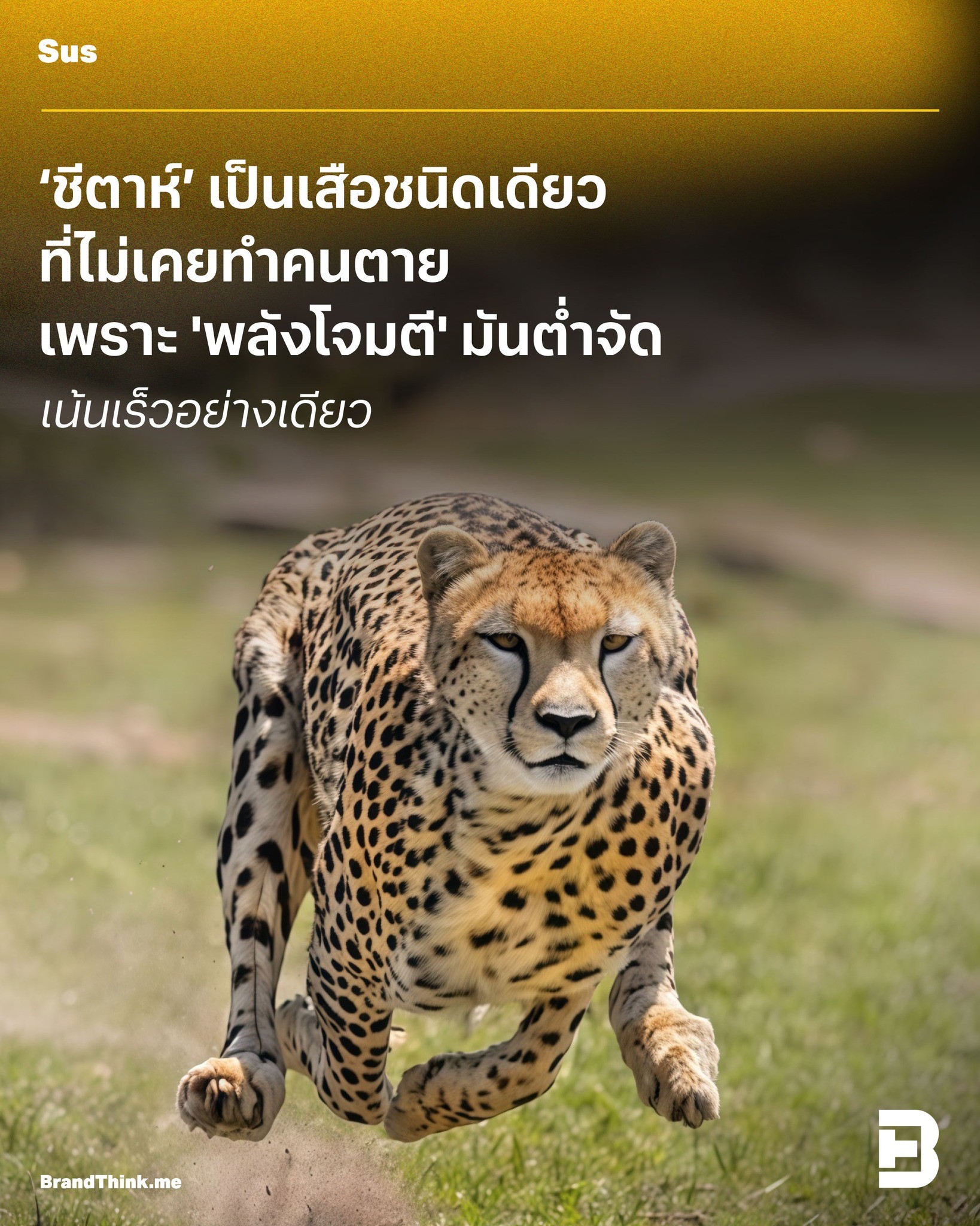 ชีตาห์’ เป็นเสือชนิดเดียว ที่ไม่เคยทำคนตาย เพราะ 'พลังโจมตี' มันต่ำจัด เน้นเร็วอย่างเดียว