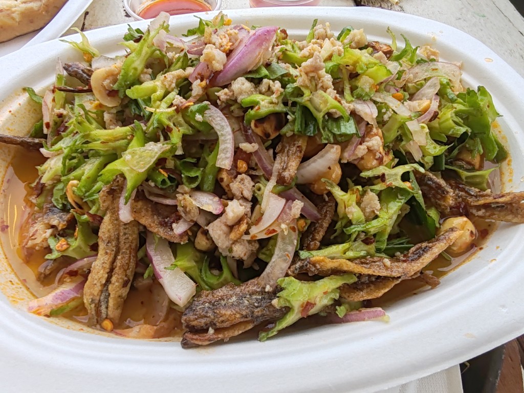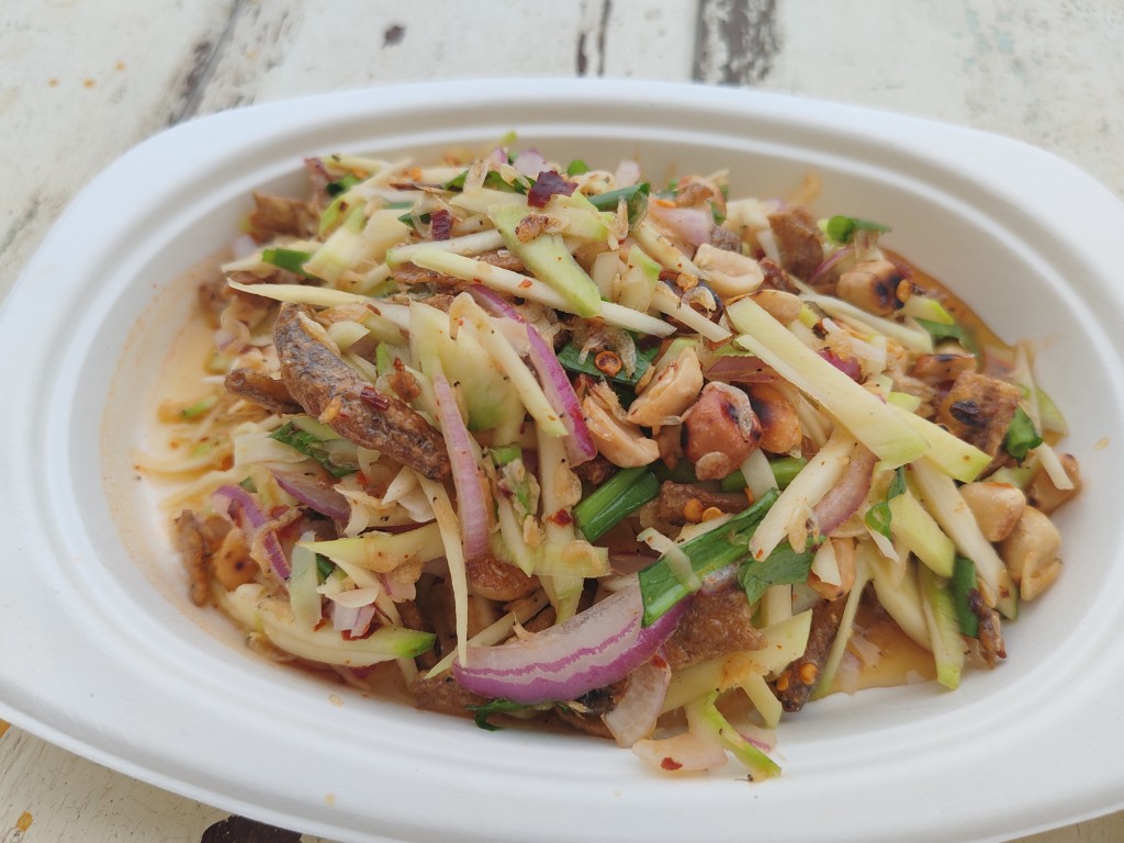 ยำมะม่วงปลากรอบครับ ราคาจำอะไรไม่ได้เลยครับ ต้องดูป้ายในรูปนะครับ55