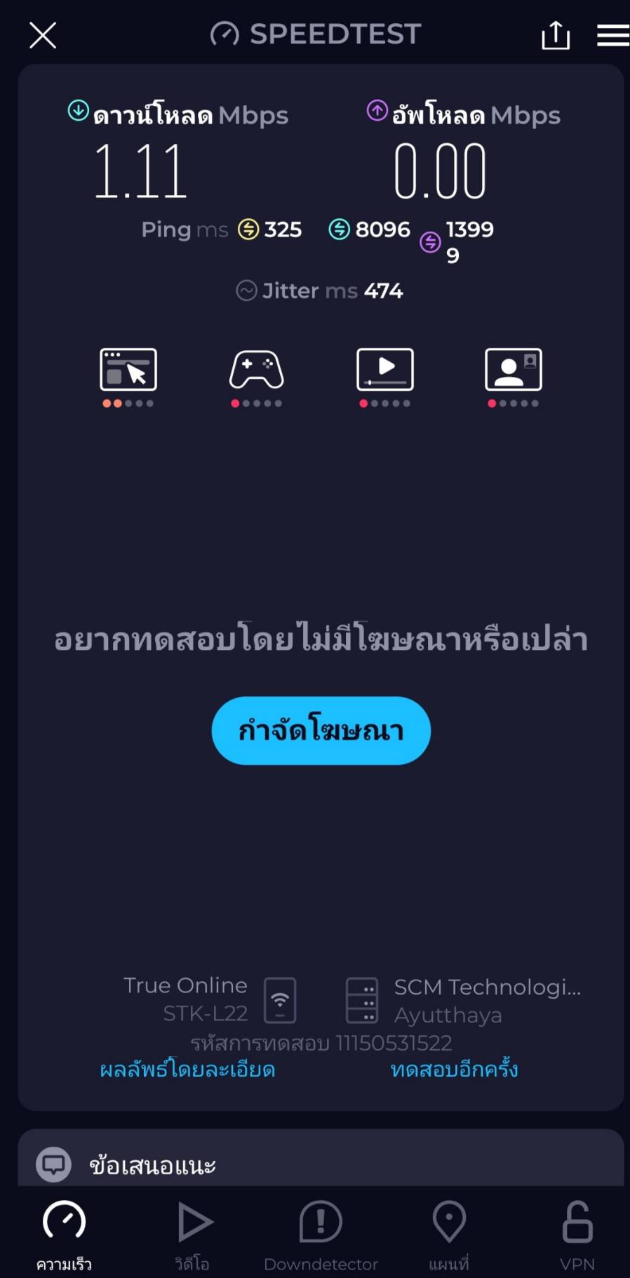 คือเราซื้อแพ็กเกจเน็ตเสริมทรูความเร็ว20mbps แบบไม่อั้นไป ซึ่งใช้ได้ถึงวันที่ 29 ธ.ค. แต่ว่าพอไปเช็คเน็ตจริงๆ ความเร็วมันวิ่งแค่ 4mbps เองค่ะ แก้ยังไงได้บ้างคะ TT พยายามรีเซ็ตสัญญาณมาหลายรอบแล้วค่ะ