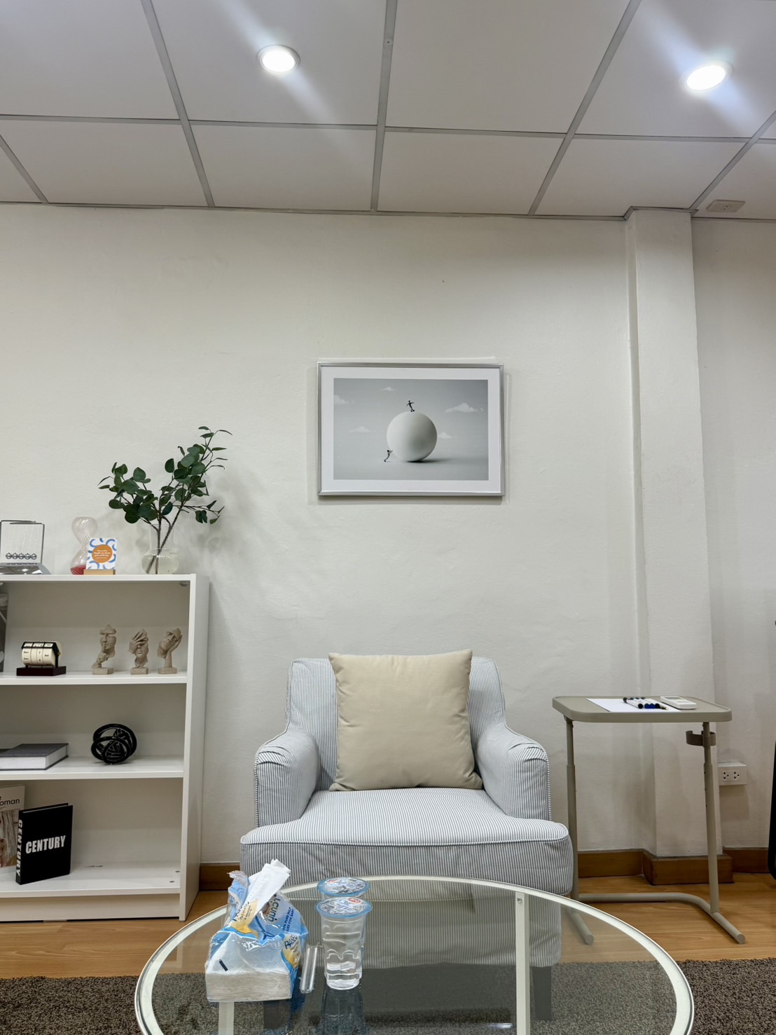 จึงนัดพบนักจิตบำบัดใกล้ๆบ้าน ที่ Happy Me Clinic แถว MRT ลาวพร้าว ภายในคลินิคก็ตกแต่งน่ารักดี บรรยากาศชิวมาก ที่คลินิคมีนักจิตให้เลือกหลายคนอยู่นะคะ เราเลยเลือกคนที่เชี่ยวชาญด้านภาวะซึมเศร้า