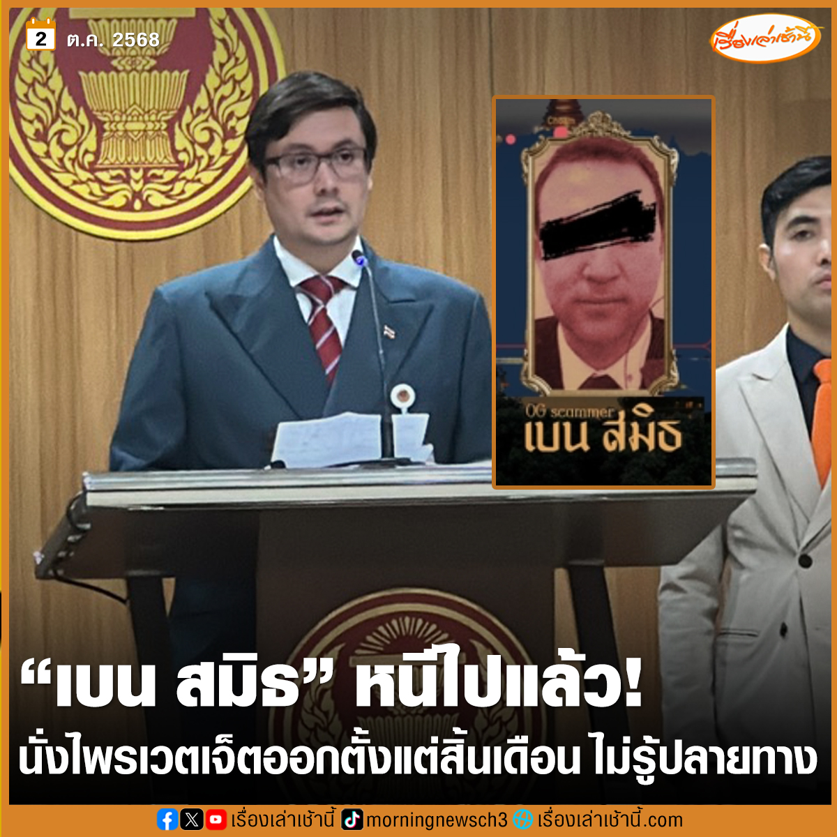 วันที่ 2 ต.ค. 2568 ที่รัฐสภา นายรังสิมันต์ โรม สส.บัญชีรายชื่อ รองหัวหน้าพรรคประชาชน ในฐานะประธานคณะกรรมาธิการ (กมธ.) ความมั่นคงแห่งรัฐ กิจการชายแดนไทย ยุทธศาสตร์ชาติและการปฏิรูปประเทศ สภาผู้แทนราษฎร แถลงผลการประชุมว่า จากที่ประชุมได้มีการพิจารณาปัญหาการฟอกเงินของกัมพูชา ที่เชื่อมโยงแก๊งคอลเซ็นเตอร์ในประเทศไทย และส่งผลกระทบต่อความมั่นคงของประเทศไทยนั้น จากการชี้แจงของหน่วยงานที่เกี่ยวข้อง ทราบว่าปัจจุบัน นายเบนจามิน สมิธ ได้หลบหนีออกจากประเทศไทยไปแล้ว โดยเดินทางด้วยไพรเวทเจต T7-TCB เมื่อวันที่ 29 ก.ย. ที่ผ่านมา โดยไม่ทราบว่าประเทศปลายทางเป็นประเทศอะไร