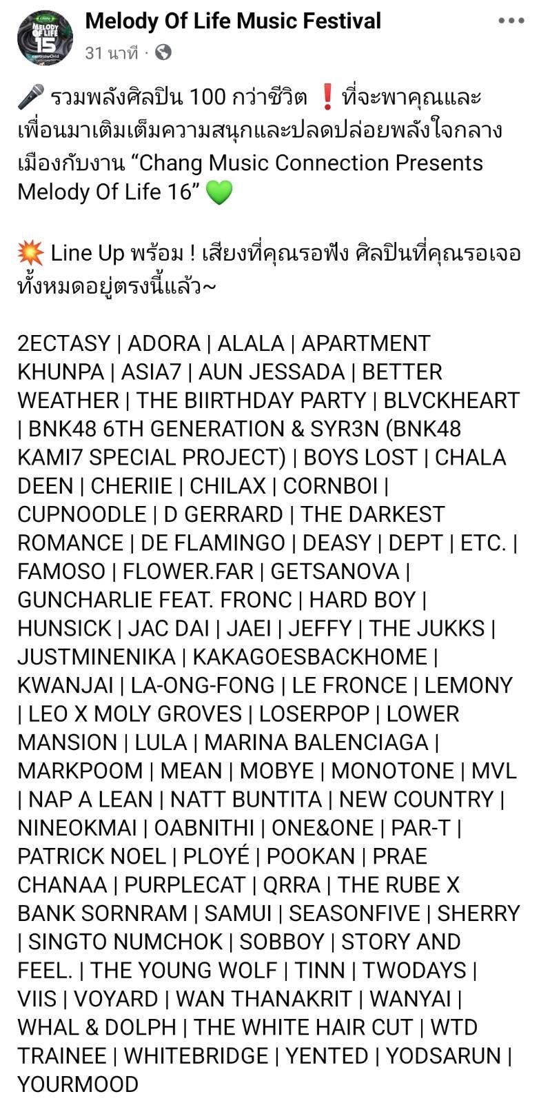 WOW!! เทศกาลดนตรี Melody of Life 16 มาทั้ง BNK48 รุ่น 6 / QRRA / ยูนิต SYR3N จาก Kami 7