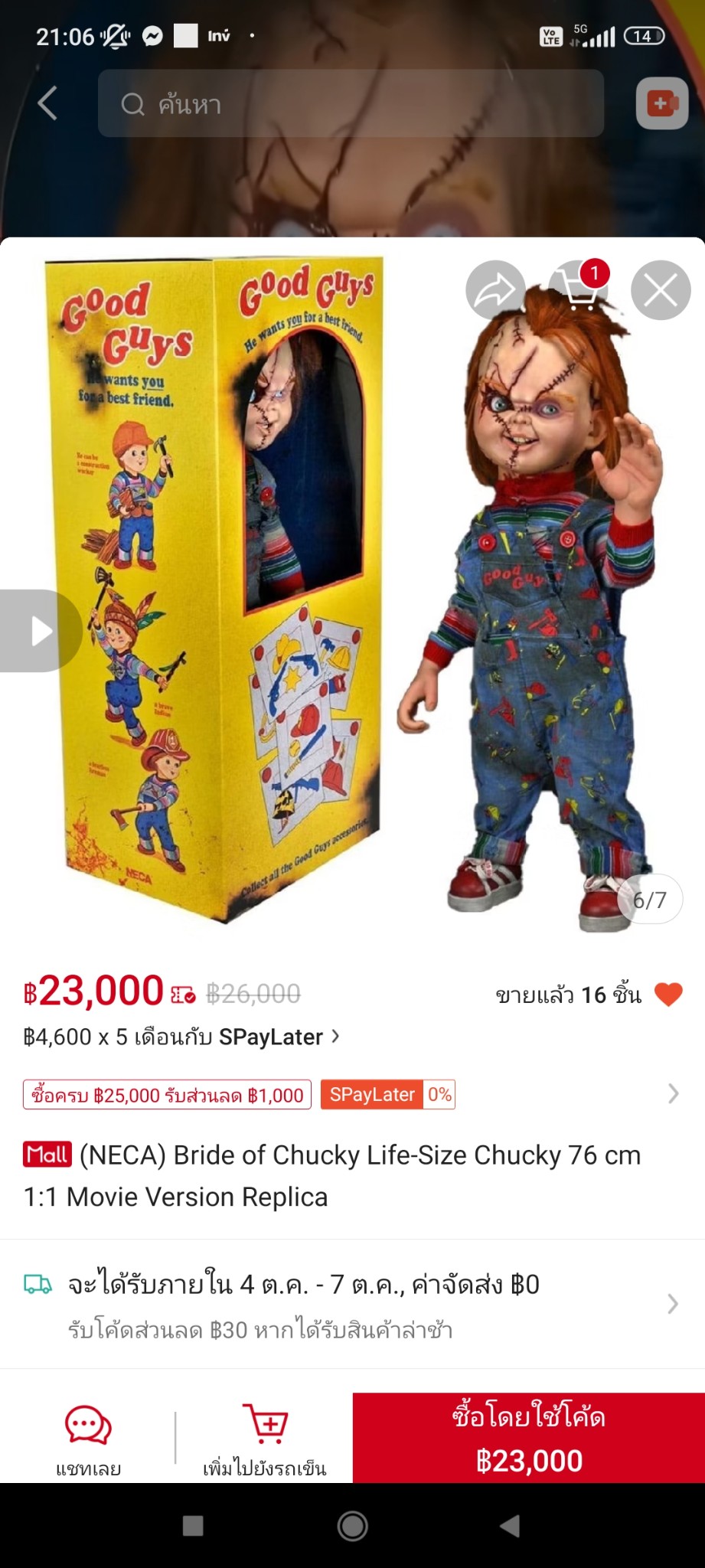 อยากจะได้ตุ๊กตา Chucky ถ้าซื้อใน shopee จะได้ตรงปกไหม และคุ้มกับราคาไหม ขอบคุณคับ ได้แบบในหนัง 1:1 เลย