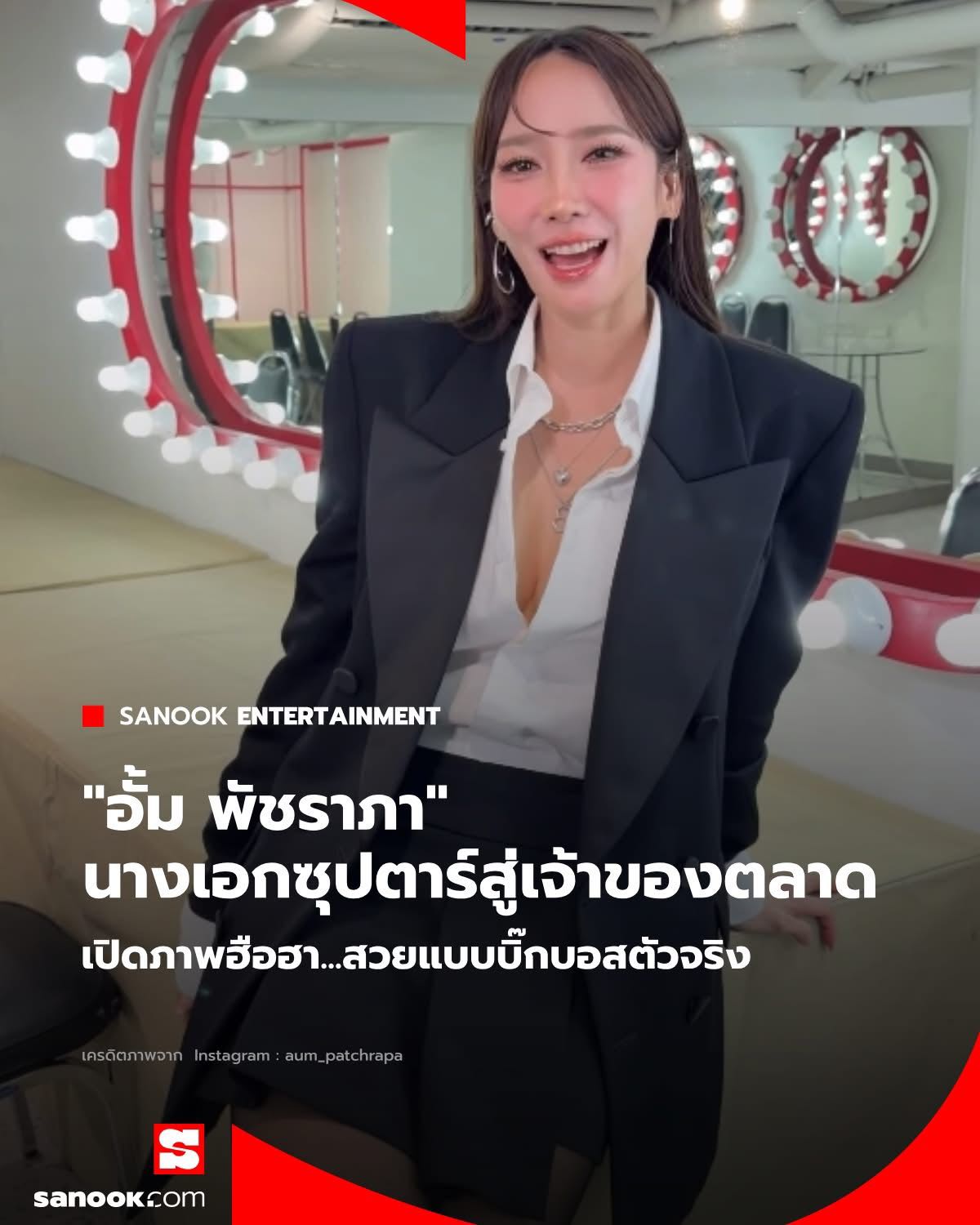 นอกจากไอเดียที่น่าสนใจแล้ว ลุคล่าสุดของ อั้ม พัชราภา ยังเป็นที่พูดถึงไม่น้อยกับลุค บอสสาวสุดมั่นในเสื้อเบลเซอร์เสื้อดำ สวมทับเสื้อเชิ้ตสีขาว หน้าสดใส สวยเป๊ะทุกมุมแบบ มาเรียบๆ แต่สวยมาก เรียกได้ว่าเป็นลุคที่ทั้งเฉียบ ทั้งมีพลังความเป็นผู้นำเต็มขั้น