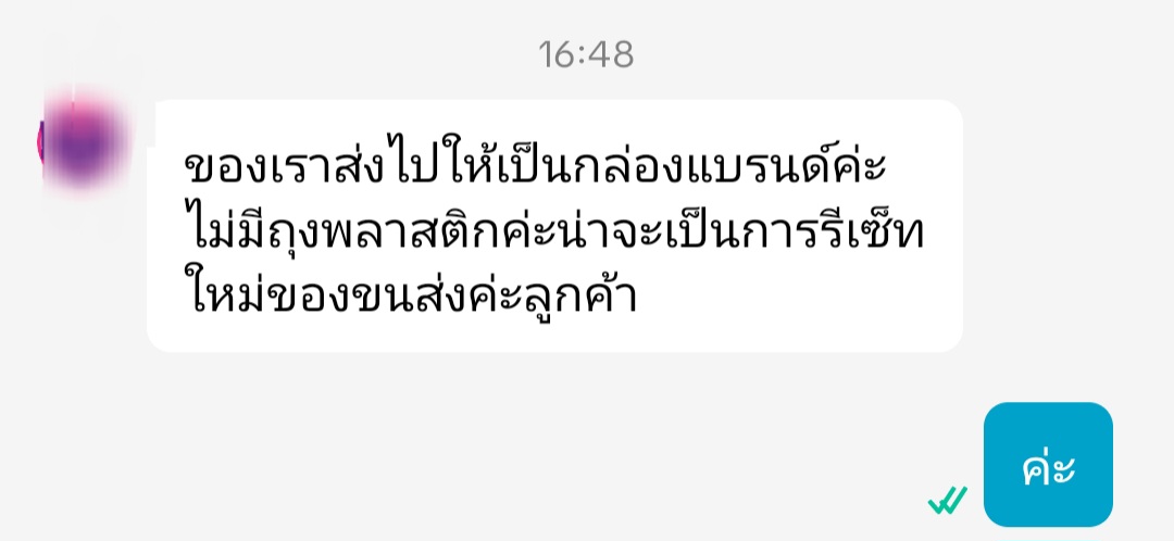 - สอบถามจากทางร้านเขาว่ากล่องที่บรรจุมาจะเป็นกล่องของแบรนด์แต่อันนี้คือการแพ็ครีเซ็ทใหม่ของขนส่ง