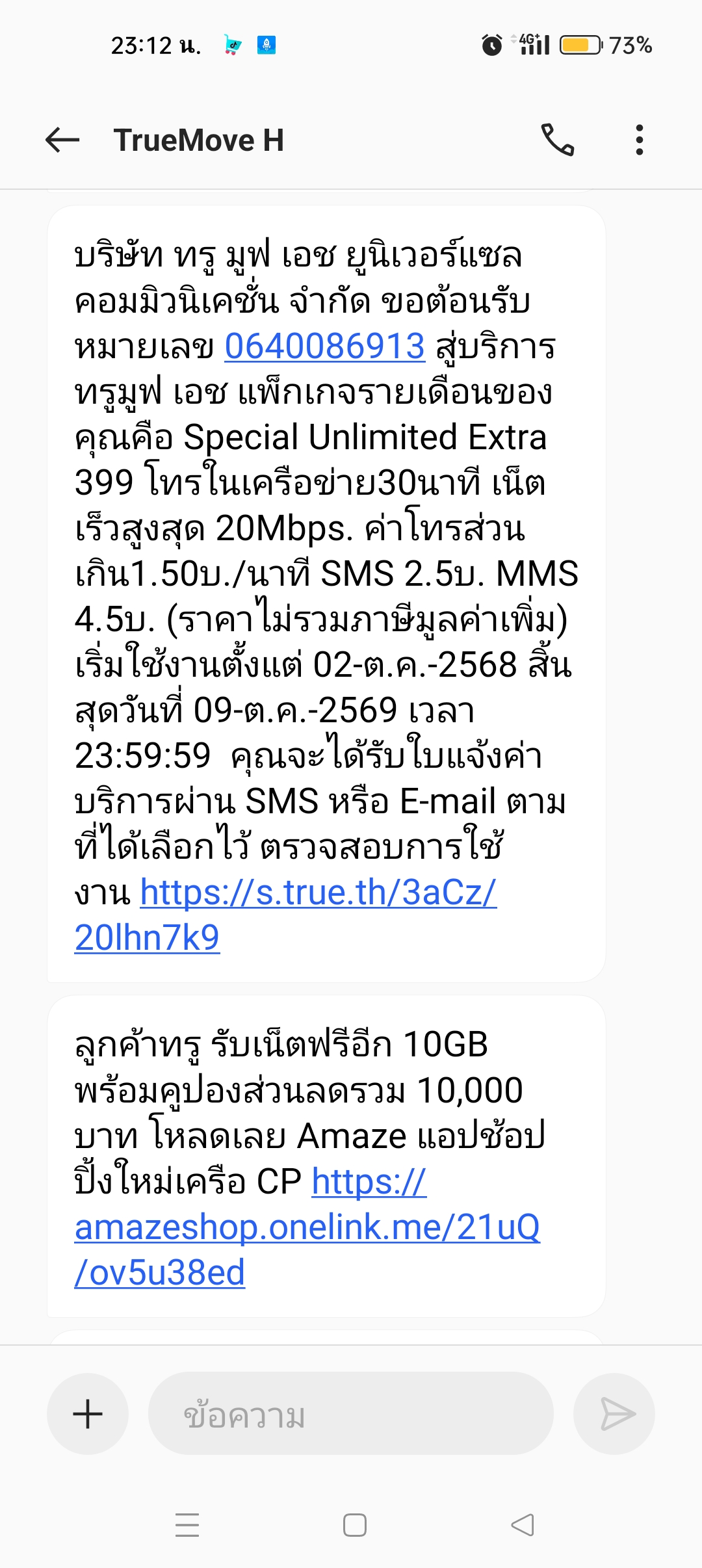 พนักงาน true โทรมาแจ้งว่าเน็ตเราจะหมดอายุและให้ทำการใช้แพ็คเกจใหม่