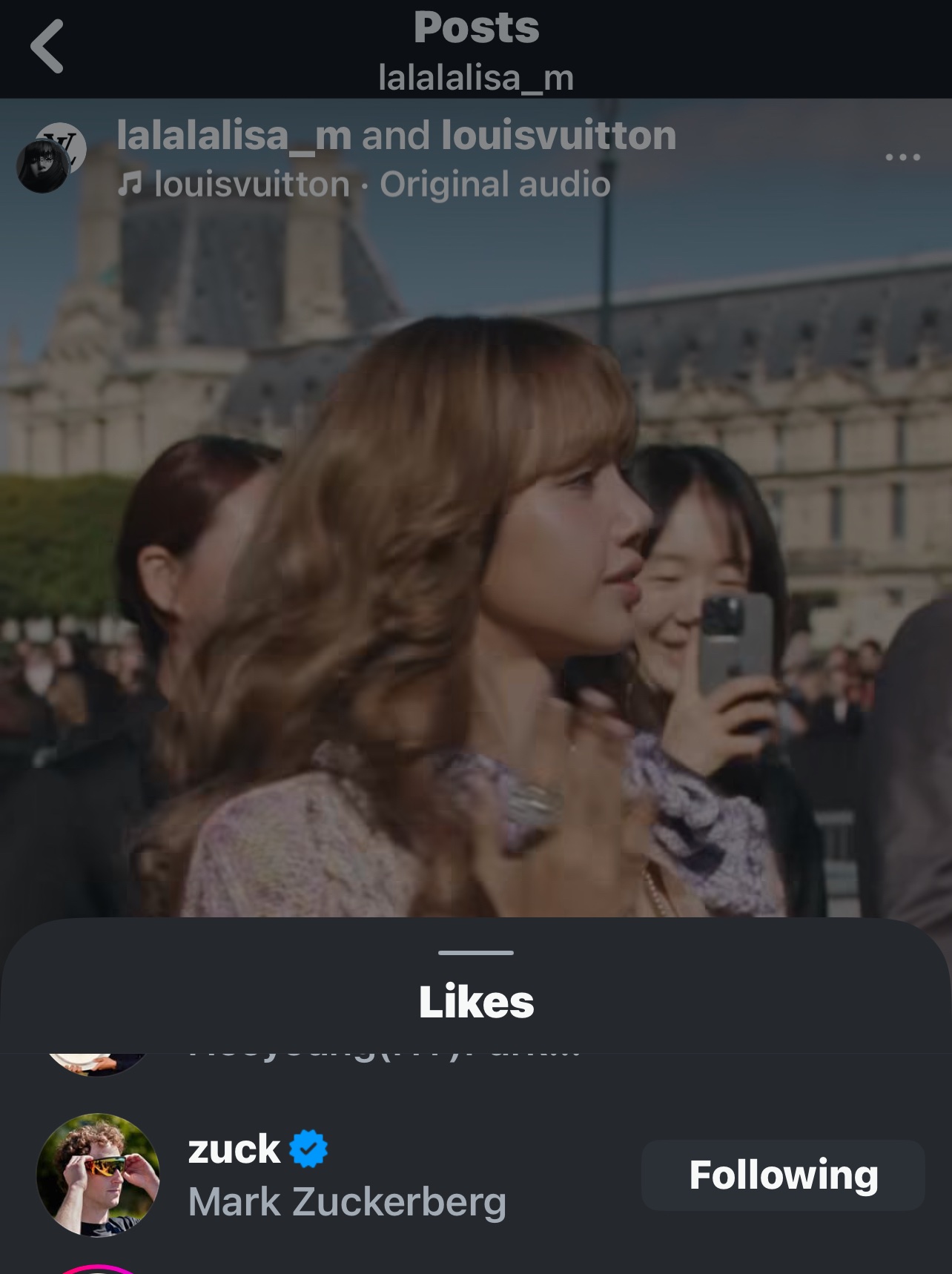 Mark Zuckerberg Meta’s CEO เจ้าของแพลตฟอร์มสะท้านโลก FACEBOOK ได้มากดไลค์ให้โพสต์ของ LISA