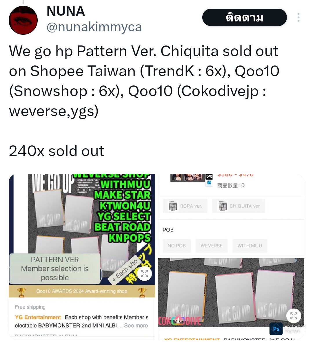 อัลบั้ม BABYMONSTER - 2nd MINI ALBUM [WE GO UP] CHIQUITA Version ขณะนี้ได้ทำ Sold Out ไปแล้วถึง 240 รอบ