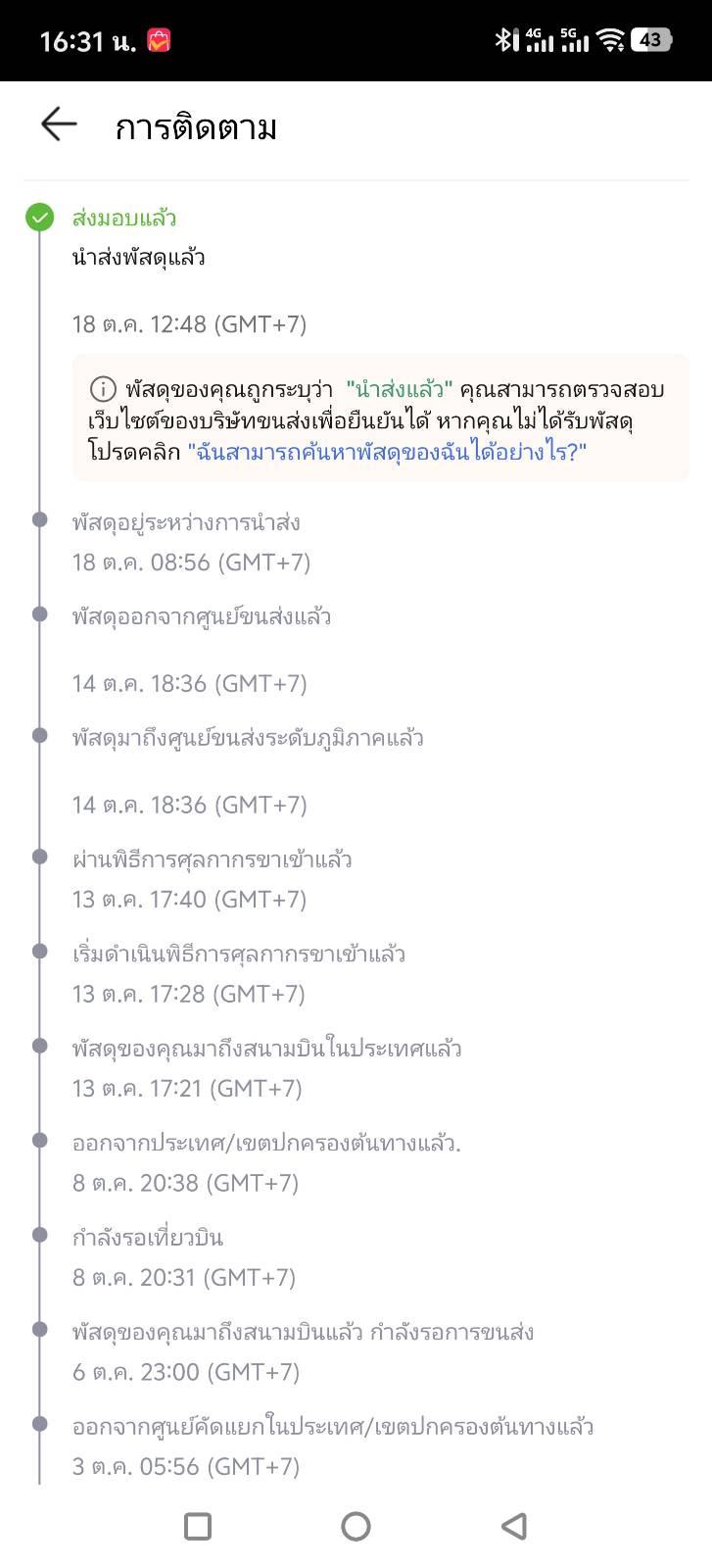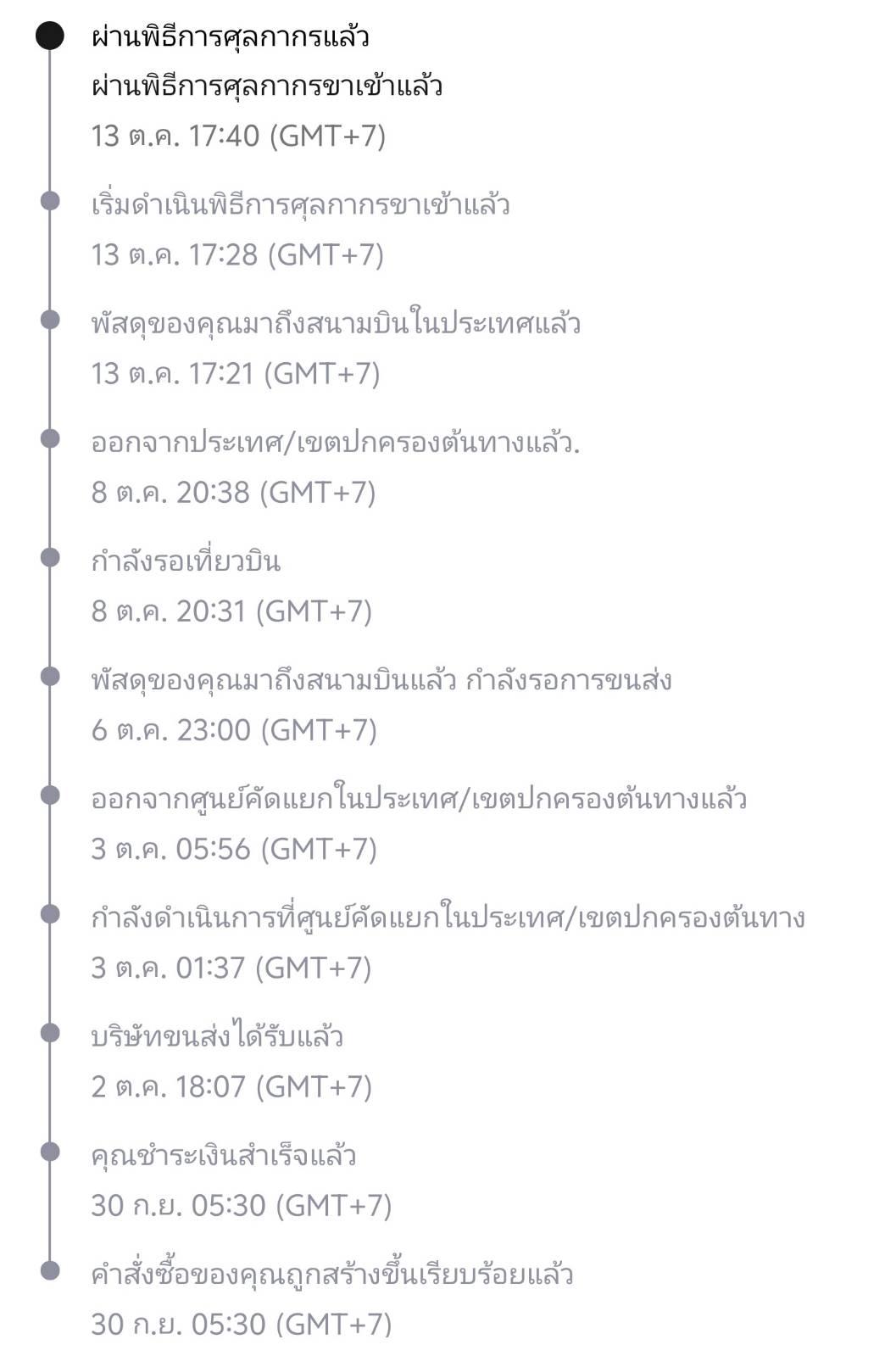 อัพเดท 5 ได้รับสินค้าเเล้วเข้าไทยโดยขนส่ง j&t จริงๆมาถึงขนส่งตั้งแต่14ละ แต่มาส่ง18 สั่ง 30กย. ได้รับของ 18ตค ก่อนหมดกำหนดได้รับ 1วัน