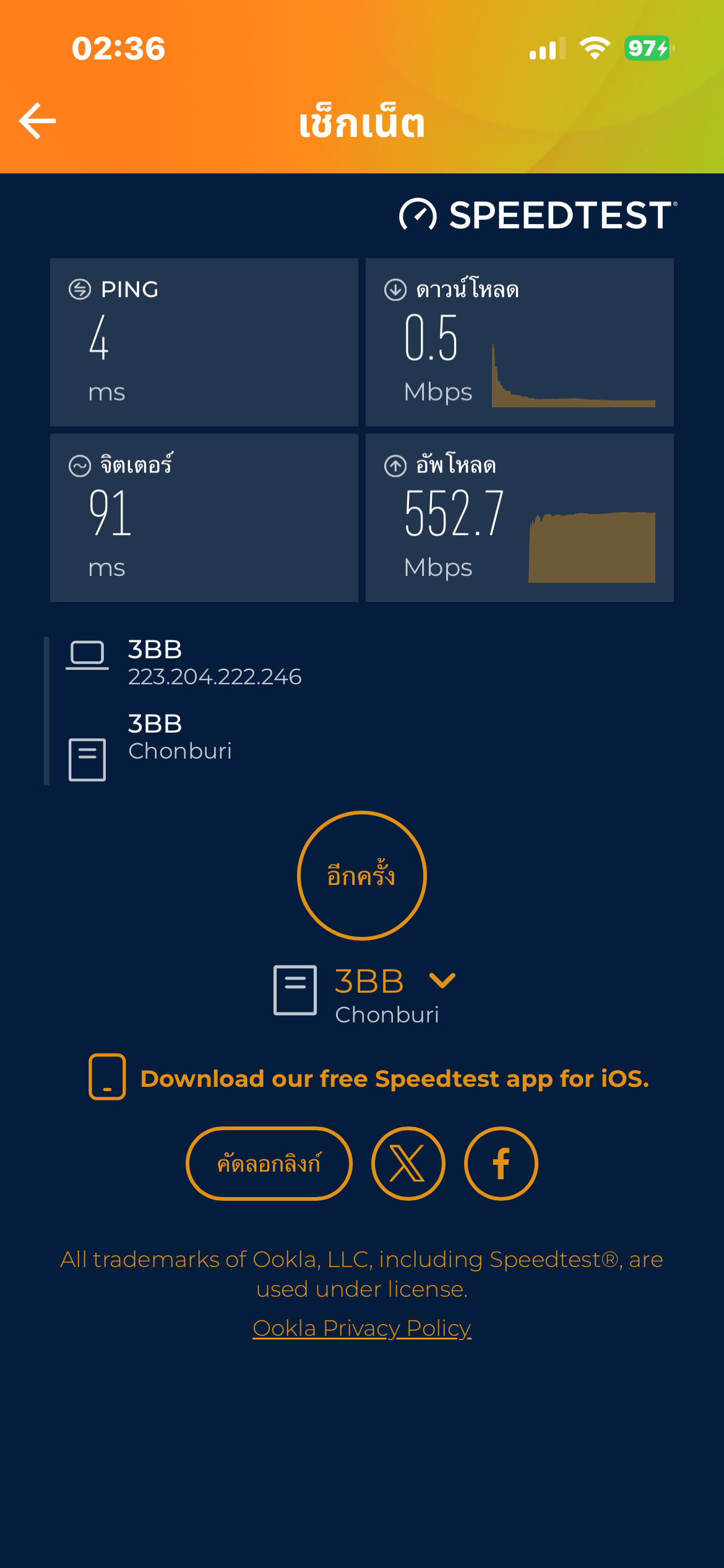 - วันที่ 3/10/68 ตื่นมาเช็คสัญญาณ ได้ 1.4/500 (ใช้งานได้ แต่ไม่โหลดอะไรหนักๆ) คือใช้โปร 1000/500 อยู่จริงๆ ใช่ไหม ทำไมถึงรู้สึกว่าถูก 3BB เอาเปรียบอยู่ตลอดเวลา ถึงเวลาชำระค่าบริการ ชำระเต็มจำนวน แต่ถามก่อนว่า เดือนนึงใช้งานดีๆ ได้กี่วัน จากการประสานงานครั้งล่าสุด ช่างมาทำให้และใช้งานได้อยู่ 2 วัน คืออะไรคะ แก้ตั้งแต่กล่องรับสัญญาณจนถึงเราเตอร์ในบ้านยังไม่ช่วยอะไร