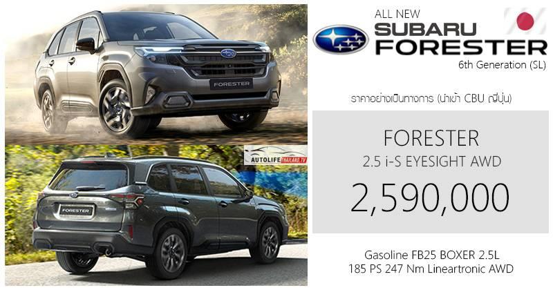 Subaru Forester 2.5 i-S EyeSight AWD (SL) ราคาอย่างเป็นทางการ : 2,590,000 บาท (นำเข้า CBU ญี่ปุ่น)