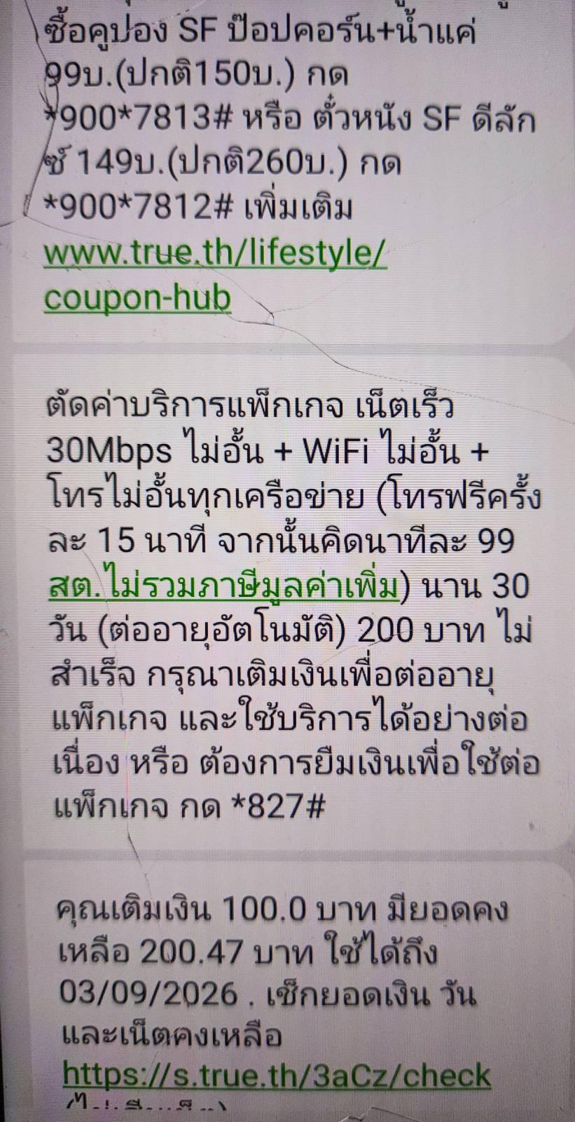 True มีข้อความแจ้งให้เติมเงินเพื่อต่ออายุแพ็คเกจเน็ตอัตโนมัติ แต่พอถึงเวลากลับแจ้งว่าไม่สามารถต่ออายุได้เรียนใครได้บ้าง