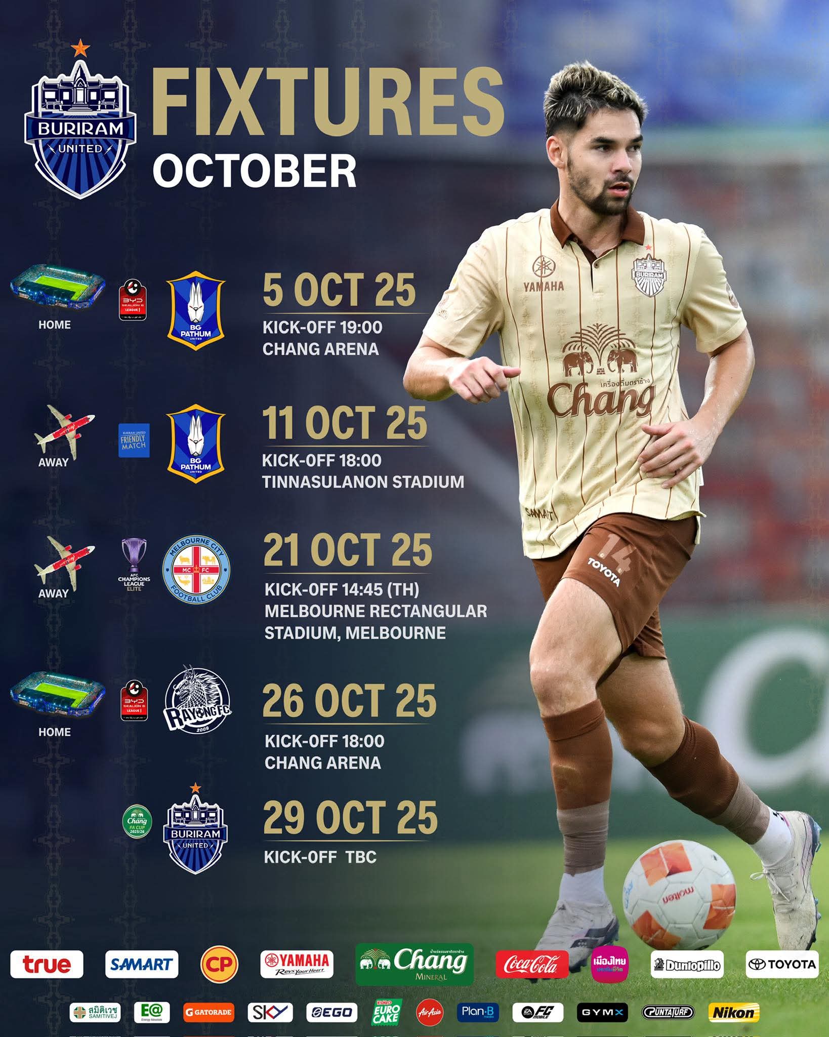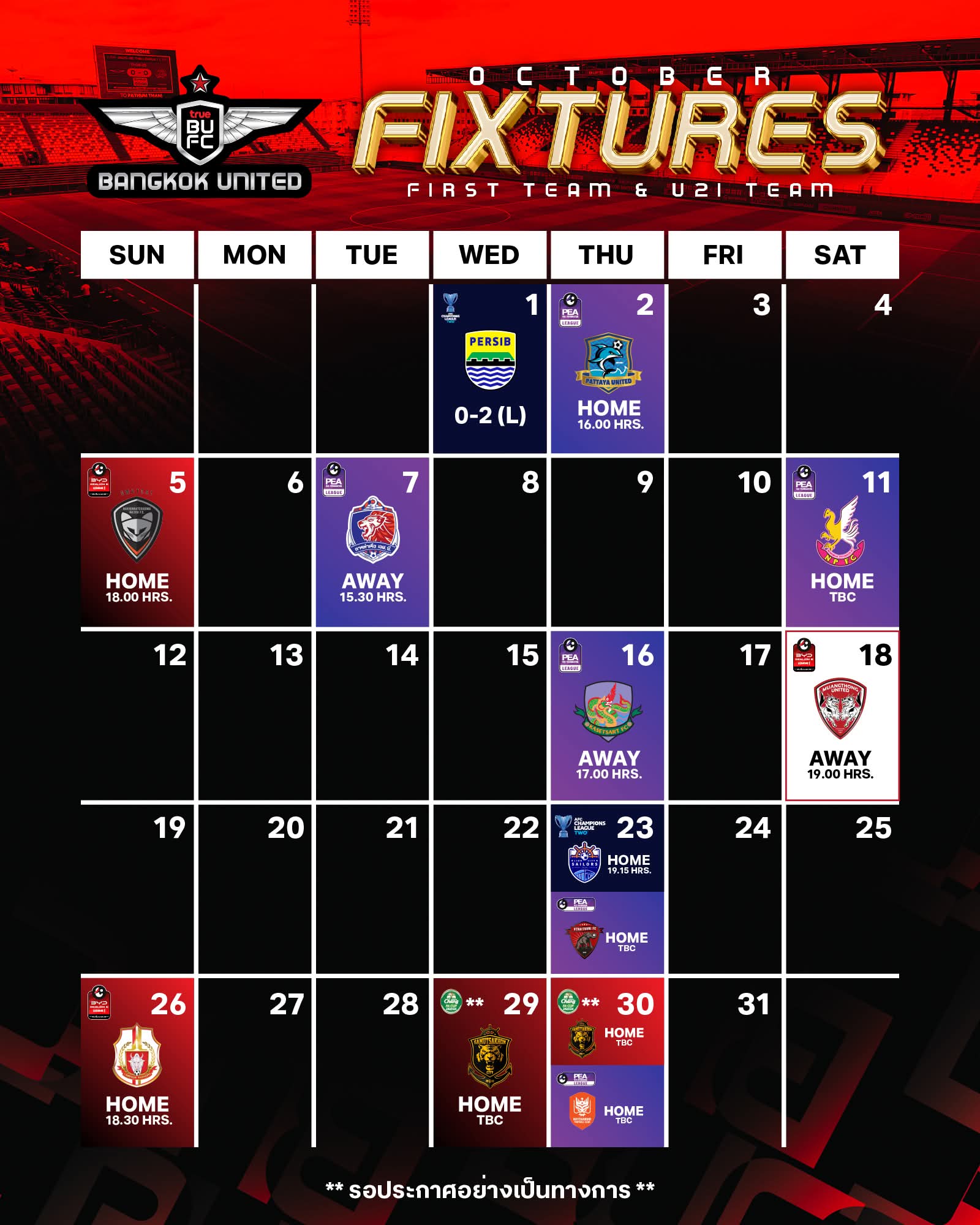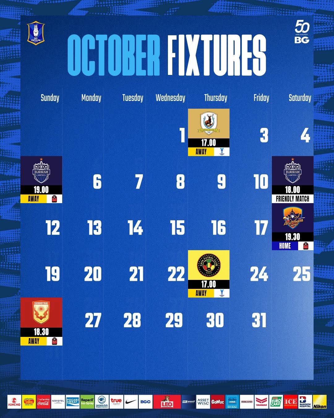 ลองดูตารางแข่งของ 3 ทีม เดือนตุลาคม 2568