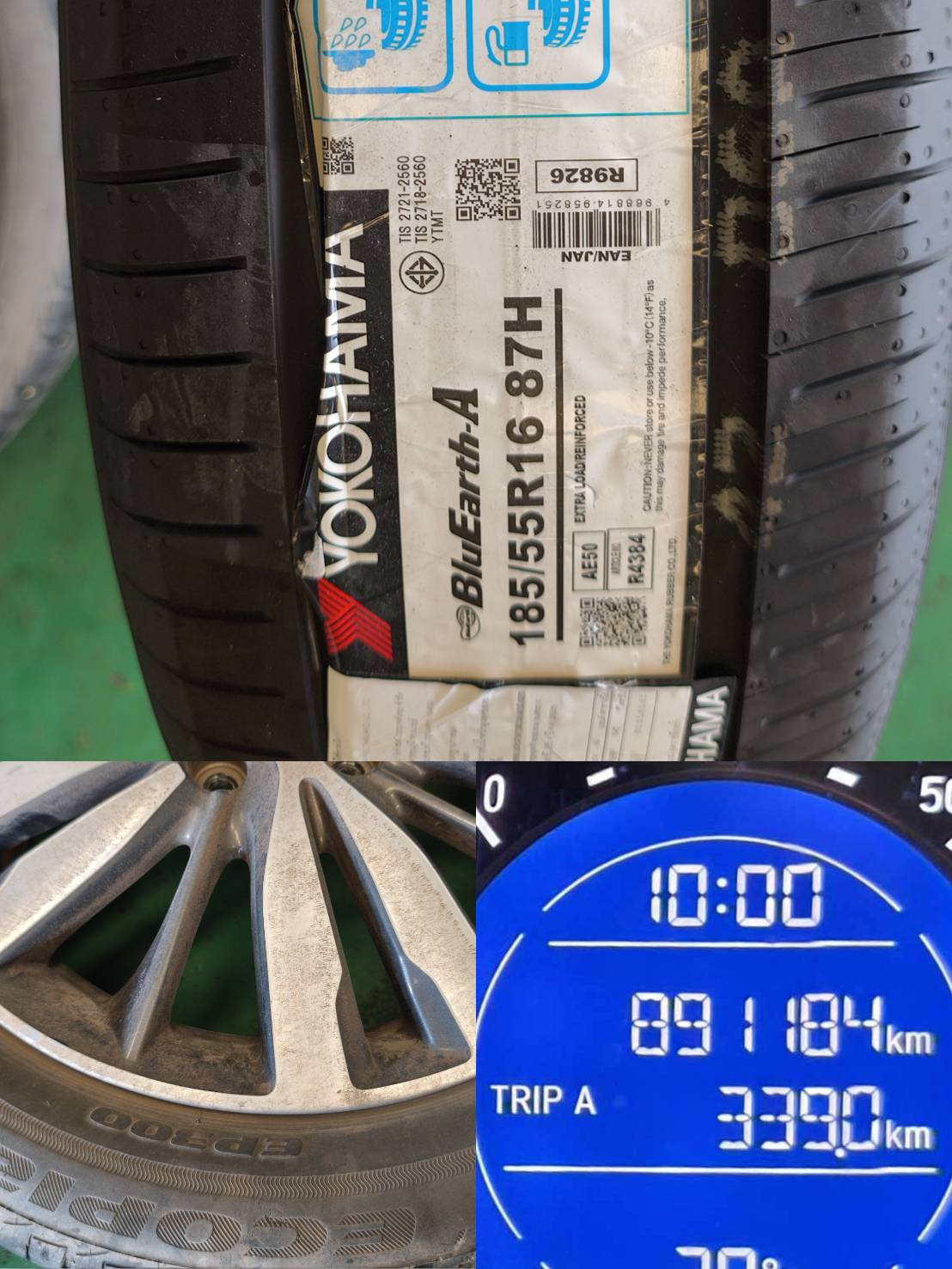 ยางเดิม บริดจสโตนอีโคเปีย 300 ใช้มาหลายชุด ก็เคที่สุดแล้ว แต่ตอนนี้ อยากประหยัดงัยครับ แล้วก็ได้ลองยางยี่ห้ออื่นด้วย เพราะรถมันไม่ได้ขับแล้ว (แต่ปีนี้ว่าไม่ได้ขับก็ซัดไป 3 หมื่นโล)ชุดล่าสุดก่อนเปลี่ยนออกก็ 7หมื่นกิโลเมตร น้องชายผมมันก็ขอYoko แบบแอตโต้3ก็ได้ ผมก็เลยต้องขับไปเปลี่ยนมาให้นี่ล่ะ
