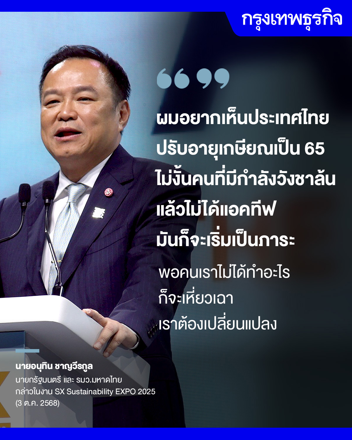 — อนุทิน ชาญวีรกูล นายกรัฐมนตรี และ รมว.มหาดไทย กล่าวในงาน SX Sustainability EXPO 2025 วันที่ 3 ต.ค. 2568