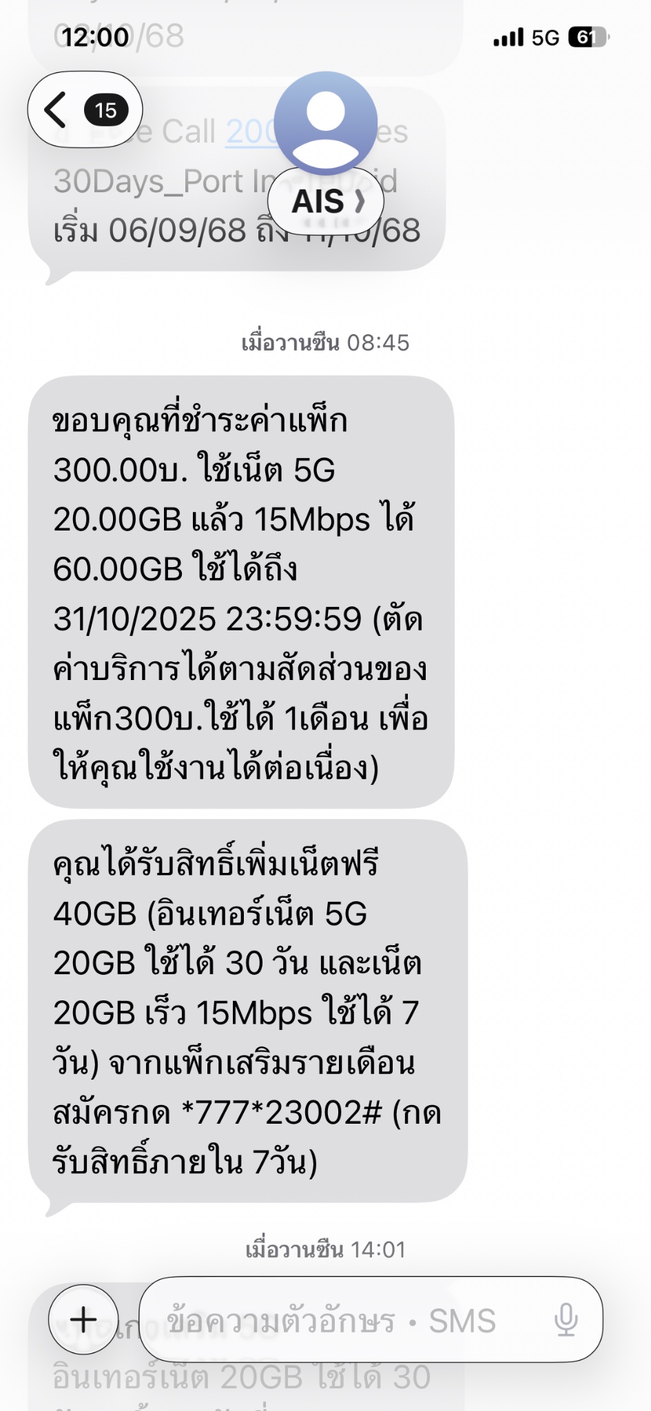 ตอนนี้ผมใช้แพ็กเกจ AIS 5G Max Speed 499 บาท/เดือน • เน็ตไม่จำกัดความเร็ว • โทรฟรี 250 นาที แต่เพิ่งมาเห็นว่ามีโปร 300 บาท/เดือน • ได้เน็ต 100GB (5G เต็มสปีด 20GB + เน็ตต่อเนื่องสูงส