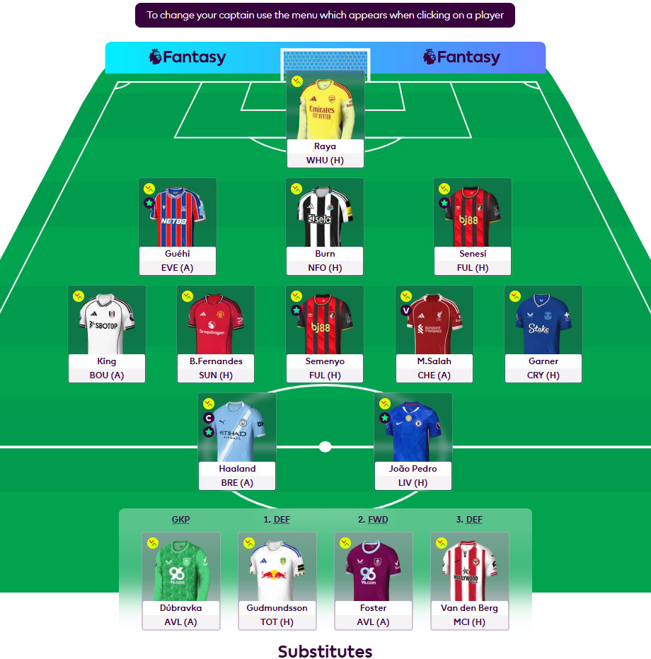 ตัวจริง จอช คิง (ฟูแลม), บรูโน่ เฟอร์นันเดส (แมน ยูไนเต็ด), เซเมนโย (บอร์นมัธ), ซาลาห์ (ลิเวอร์พูล), การ์เนอร์ (เอฟเวอร์ตัน)
