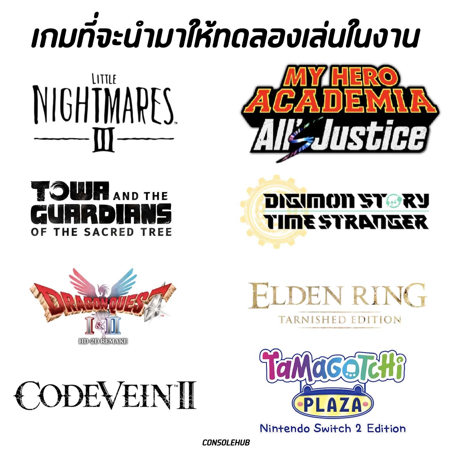 รายเกมของค่าย bandai namco และ square enix ที่ให้มาลองเล่น ในงาน gamescom asia x thailand game show 2025