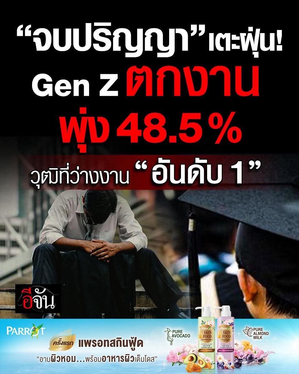 อึ้ง! “จบปริญญา” เตะฝุ่นเพียบ “Gen Z” ตกงานพุ่ง 48.5% พบเป็นวุฒิการศึกษาที่ว่างงานมากที่สุดเป็น “อันดับ 1”.
