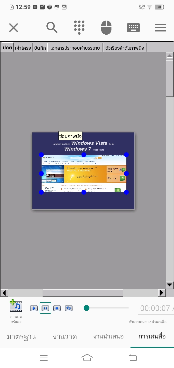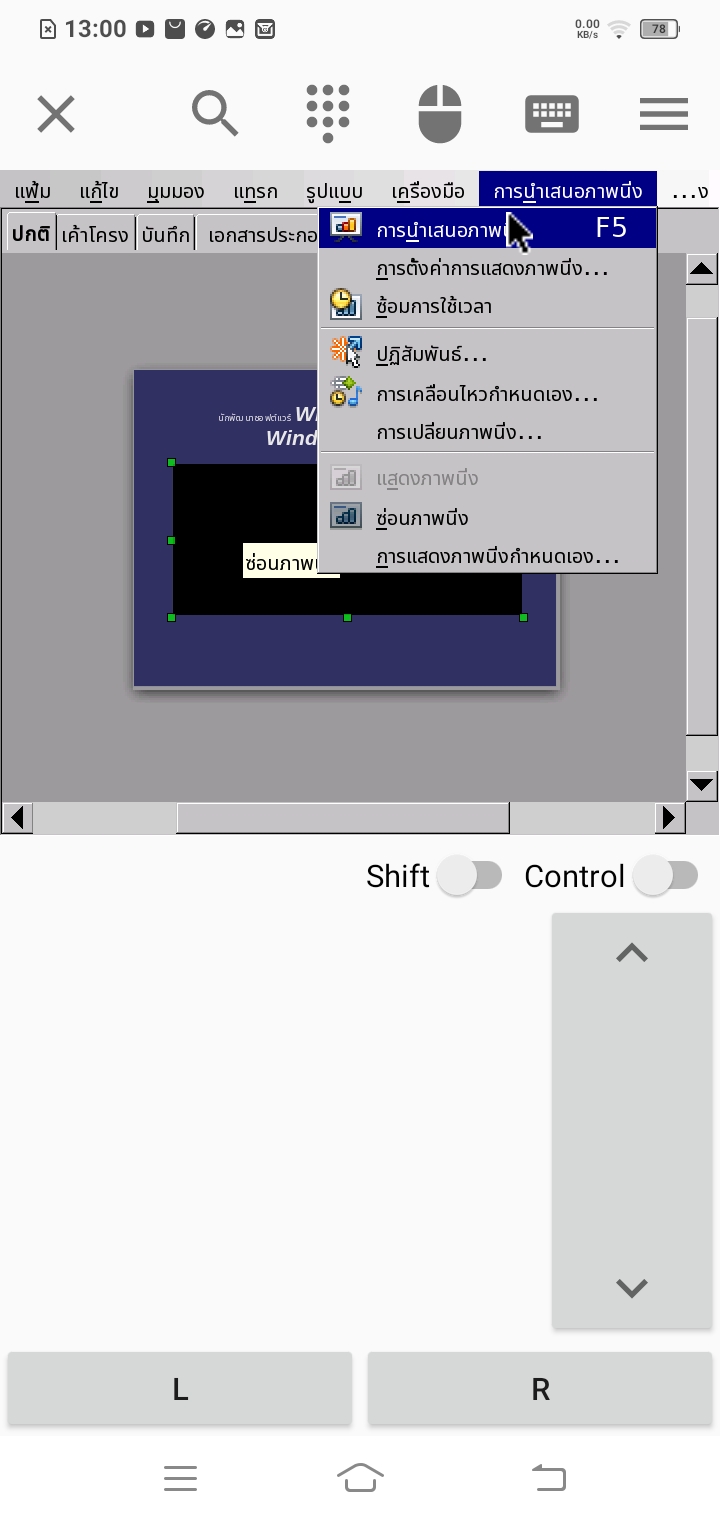 นอกจากนี้ ยังสามารถนำเสนอภาพนิ่งได้ หรือกด F5 เพื่อนำเสนอภาพนิ่ง
