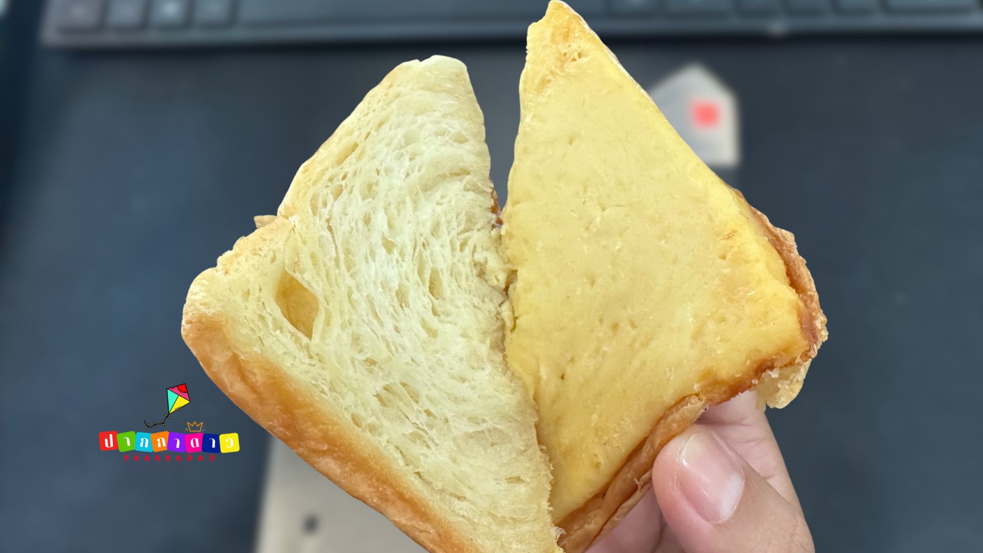รสชาติหวานกำลังดี หอมกลิ่นคัสตาร์ดผสมกลิ่นเนย มีความละมุนแบบ Egg Tart ที่ย่อส่วนมาใส่แซนด์วิชเลย