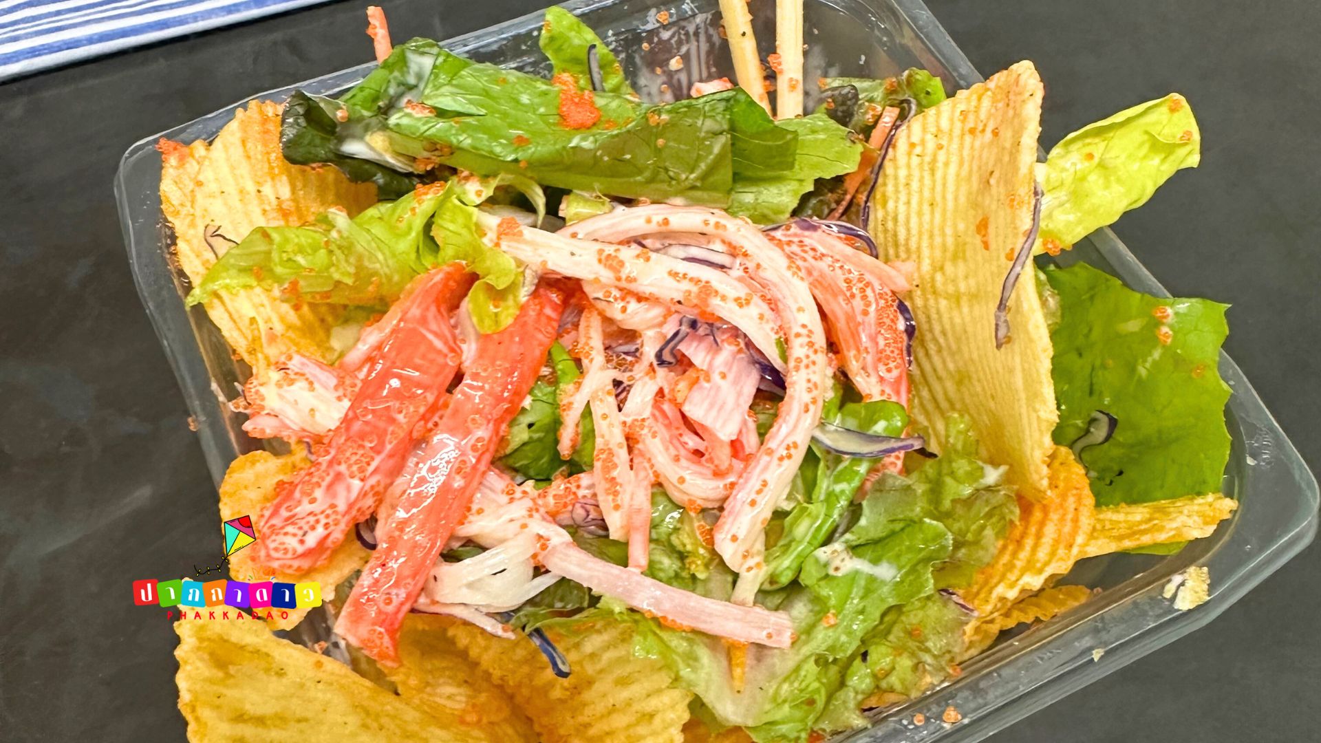 👅 รสชาติที่ได้ กรอบจากเลย์ + หอมซอสบาร์บีคิว ตัดกับความสดกรอบของผัก ปูอัด ให้รสหวานเค็มกำลังดี เข้ากับน้ำสลัด ไข่กุ้ง คือไฮไลต์ เคี้ยวแล้วแตกกรุบ ๆ เค็มมันเบา ๆ ฟินเหมือนกินซูชิแต่เป็นเวอร์ชันสแน็ค รวม ๆ แล้ว ได้รสชาติ นัว–หวาน–เค็ม–มัน–กรอบ ครบจบในคำเดียว