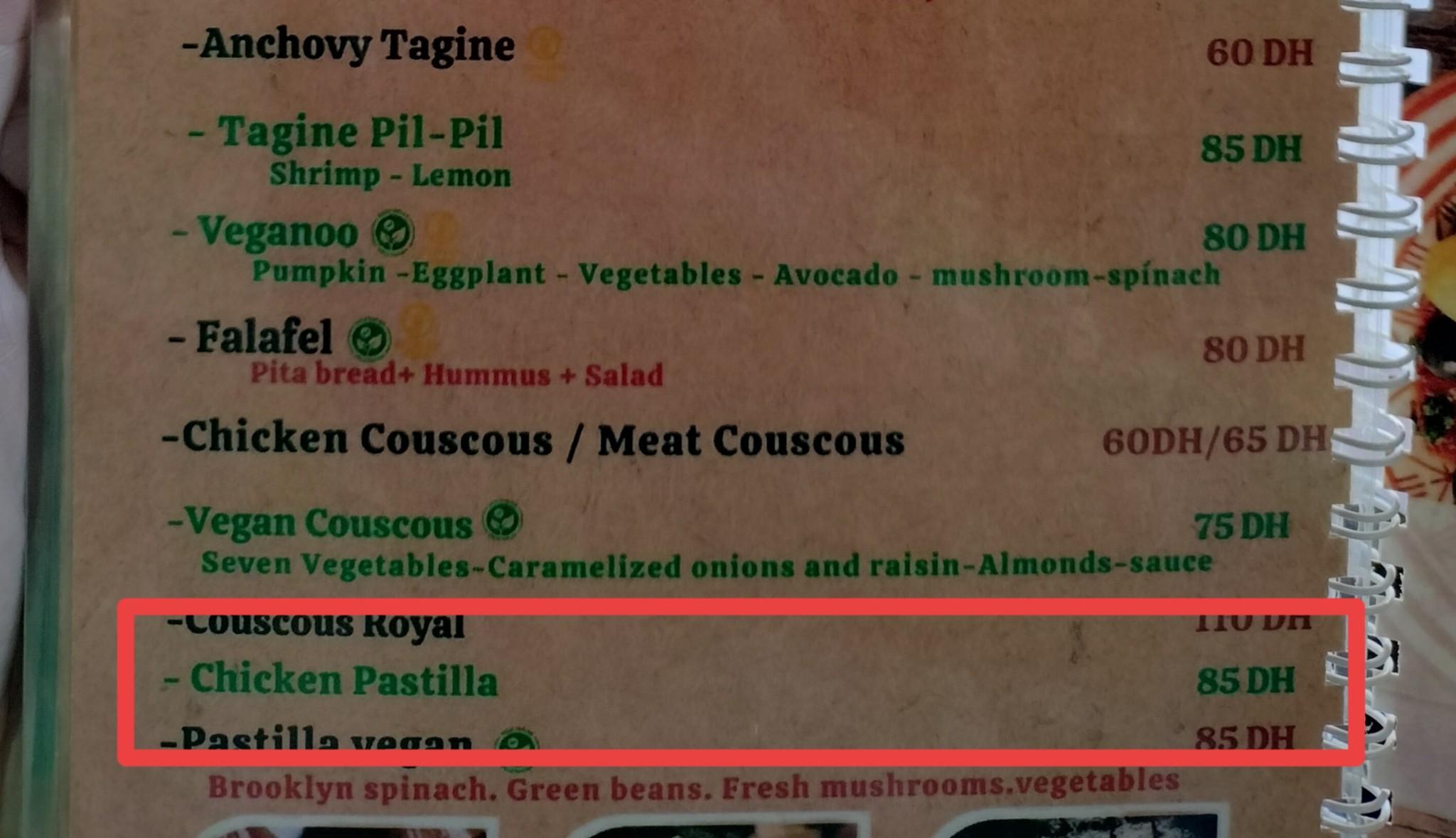 Pastilla ดูน่าจะเป็นแนวขนมปนๆแนวของว่าง เพราะมีส่วนผสมทั้งที่ให้ความหวาน แต่ก็มีเนื้อสัตว์แบบของคาวร่วมด้วย