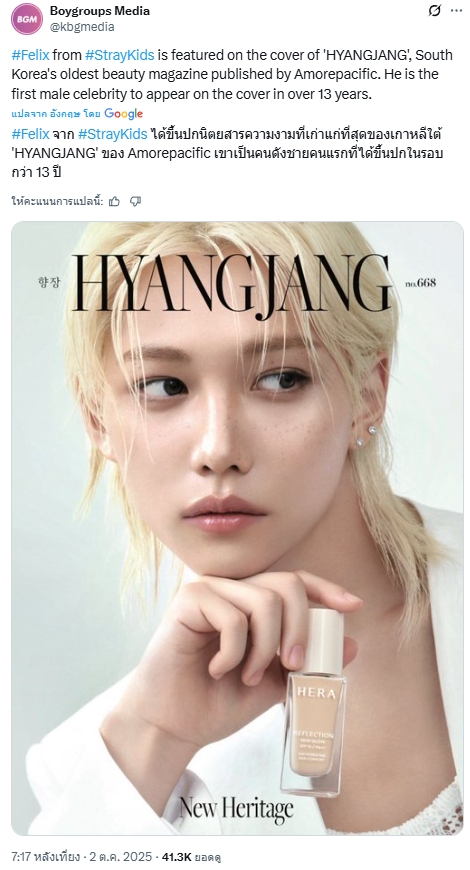 🔥 Stray Kids Felix บนหน้าปกนิตยสารความงามที่เก่าแก่ที่สุดของเกาหลีใต้ “HYANGJANG” ที่จัดพิมพ์โดย Amorepacific