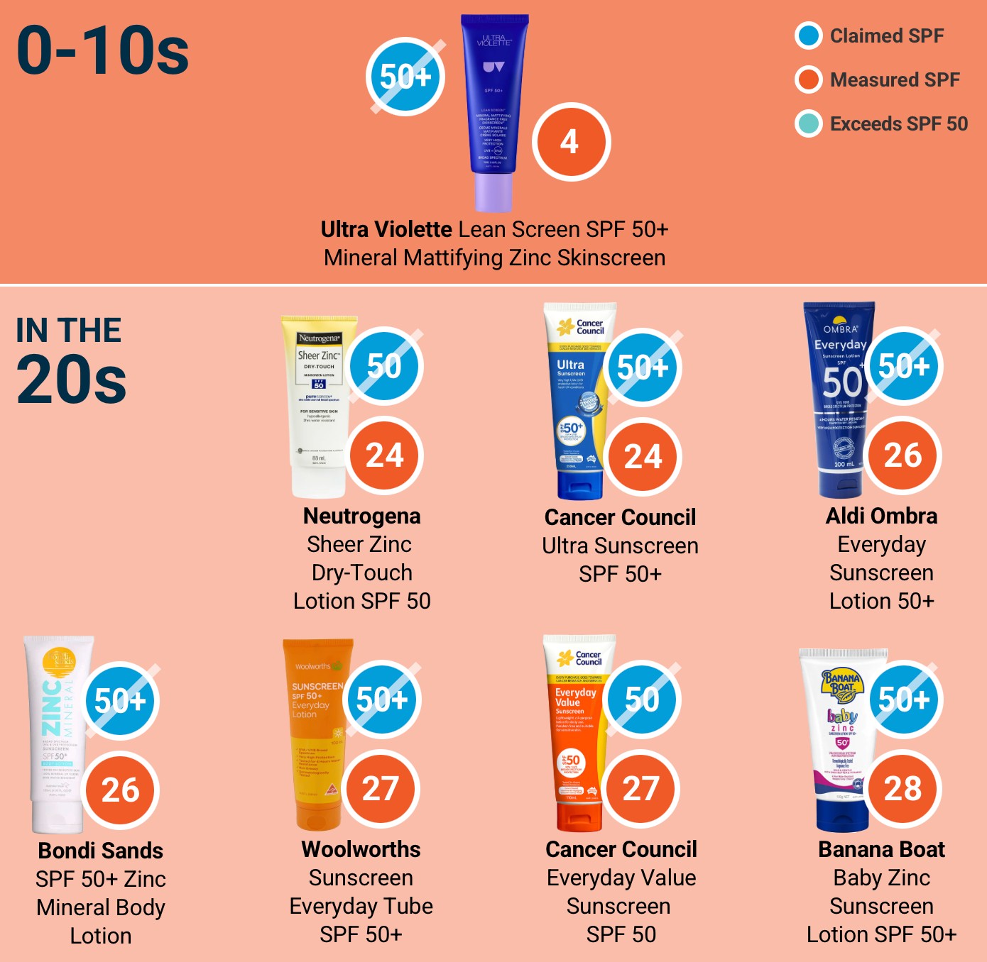 องค์กรผู้บริโภคออสเตรเลีย (CHOICE) ได้ส่งครีมกันแดดทั้ง 20 รายการไปทดสอบในห้องปฏิบัติการที่ได้รับการรับรองจากหน่วยงานกำกับดูแลสินค้ารักษาโรค (TGA) ของออสเตรเลีย ผลปรากฏว่า