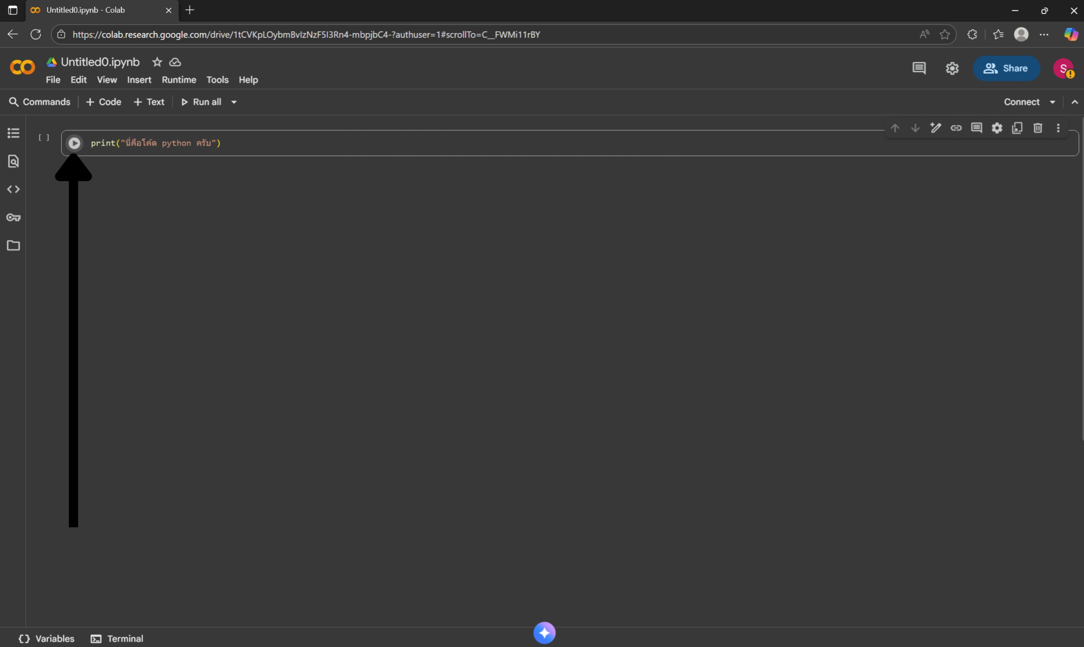 หลังจากนั้นให้ใส่โค้ดนี้ลงในช่องและกดปุ่ม run ( แบบนี้ (>) ) ครับ