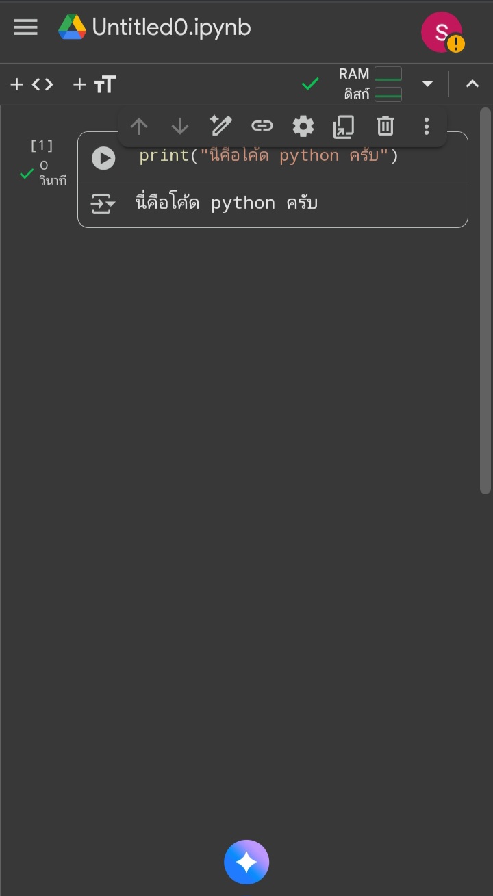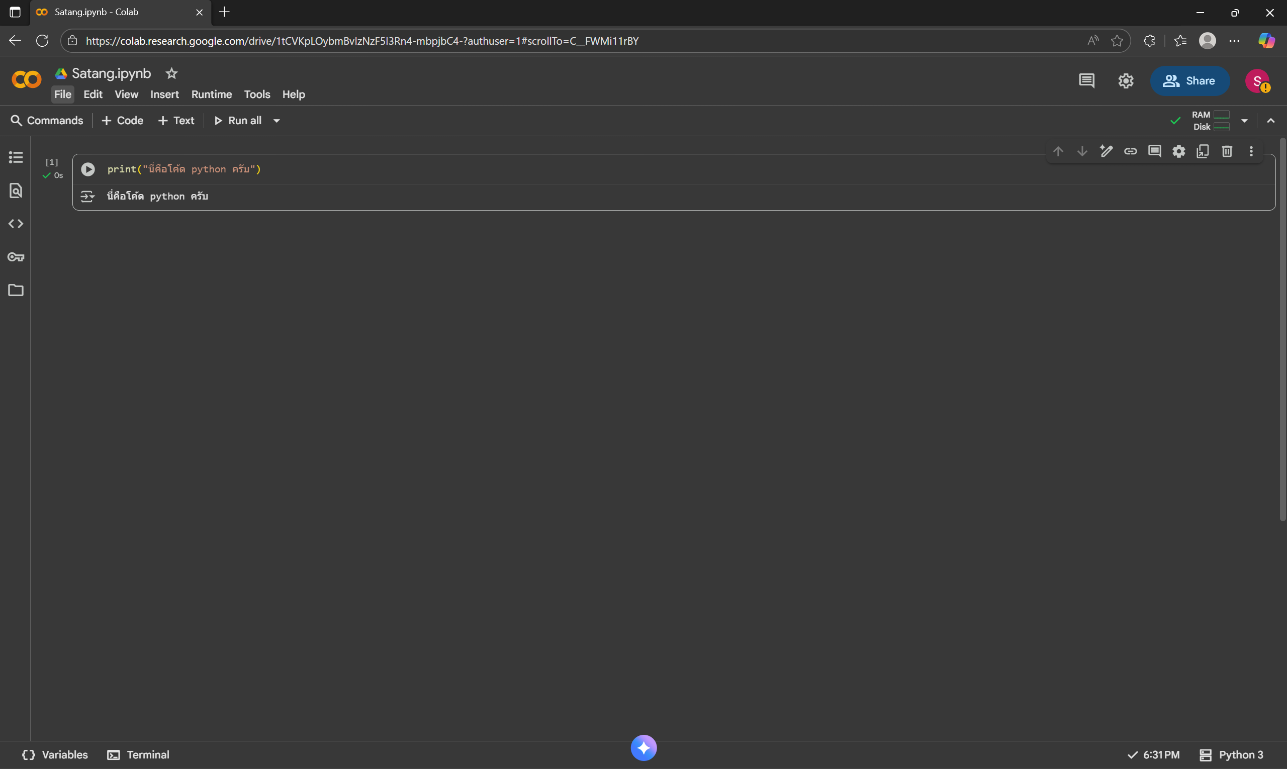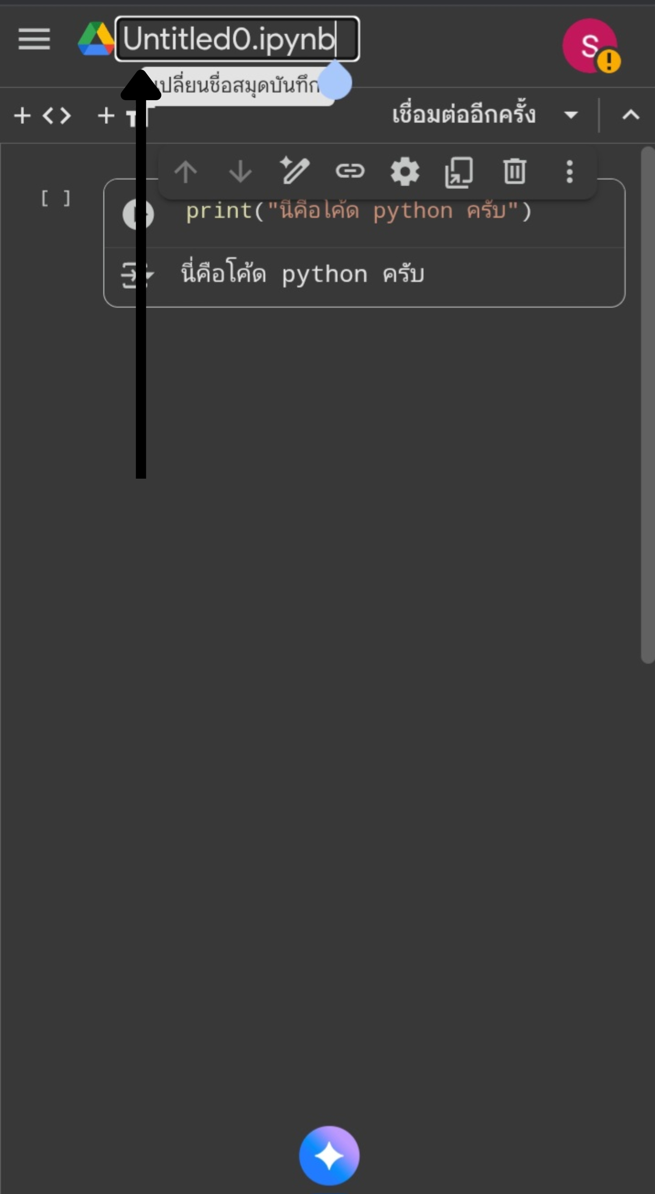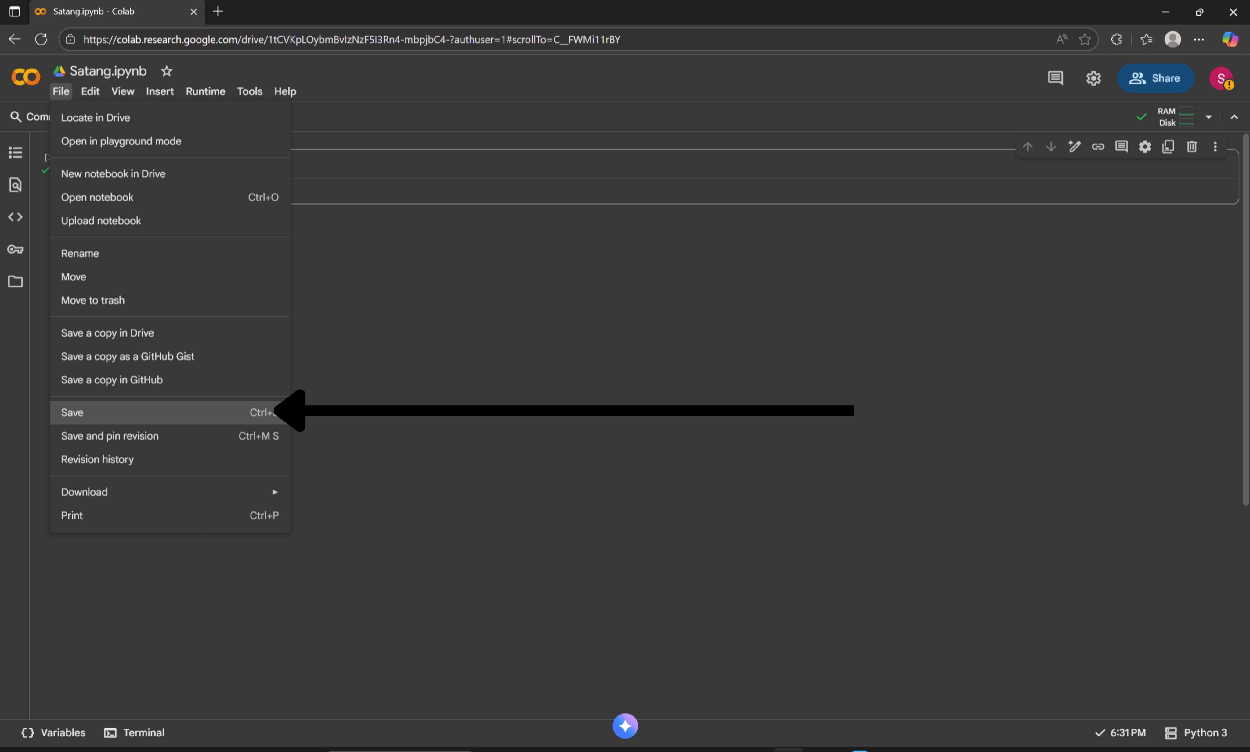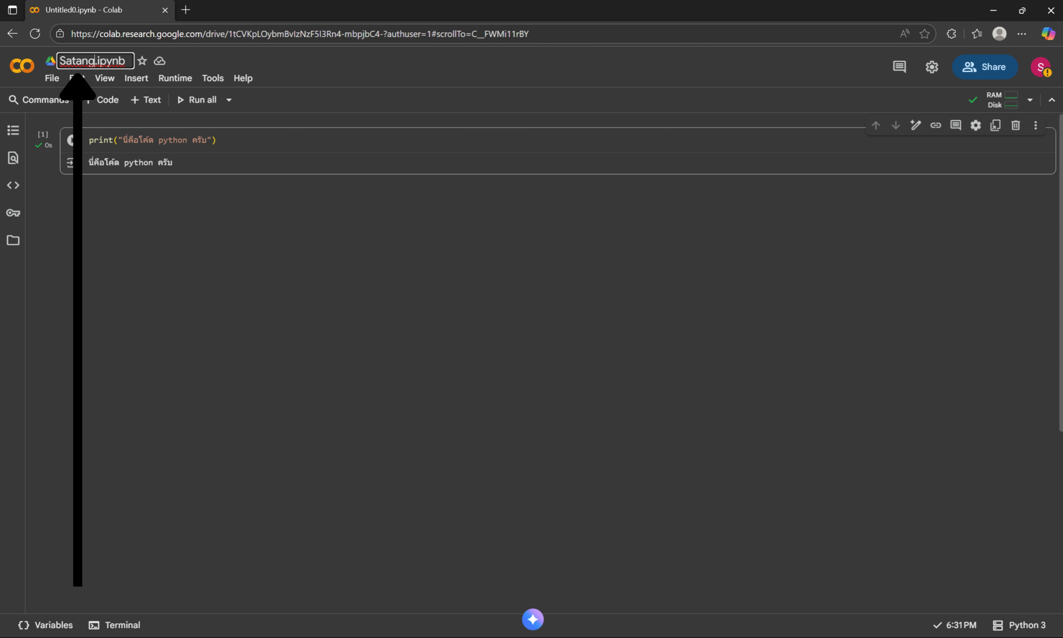 Google Colab แล้ว ให้คลิกที่ File ที่อยู่มุมซ้ายบนครับ