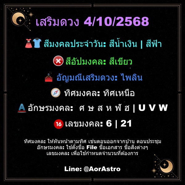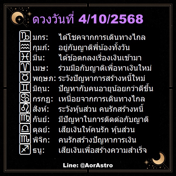 ดวงรายวัน by AorAstro วันที่ 4/10/2568