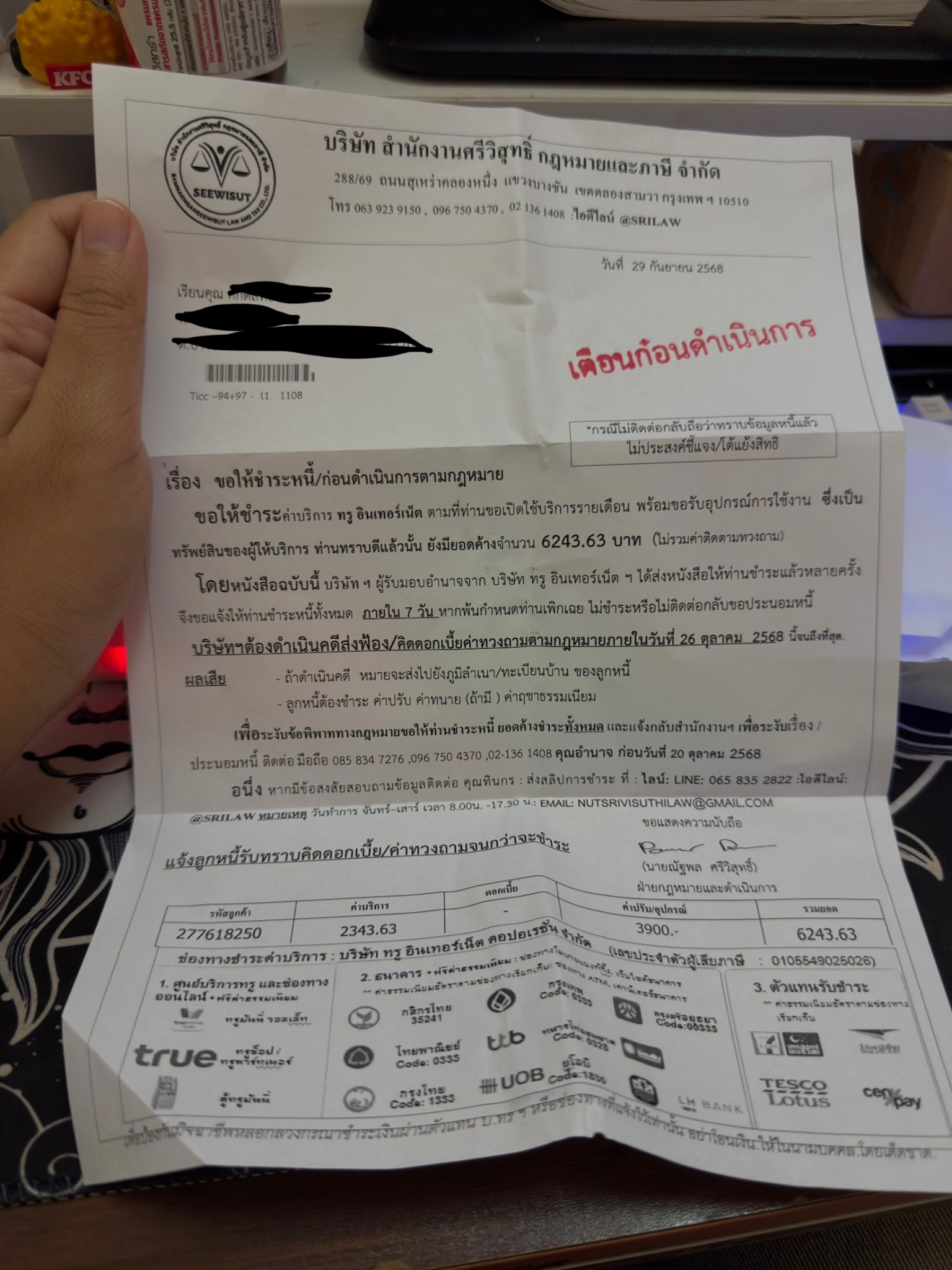 ใครเคยได้รับจดหมายทวงหนี้จากของทรูบ้างครับ