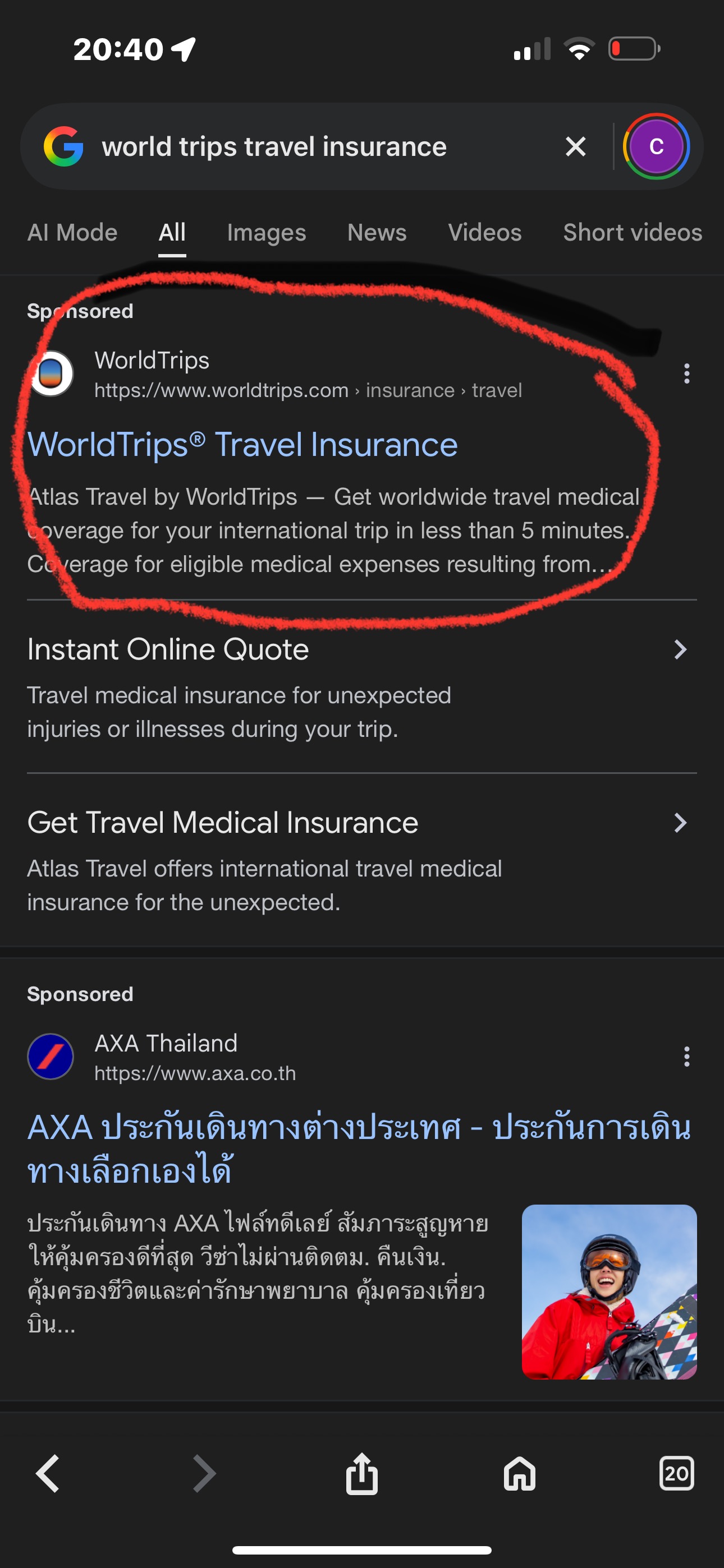 โชคดีที่หาซื้อ ผ่าน on line กับ Worldtrips Travel insurance อยู่ที่ Ilinoise USAตาม link นี้