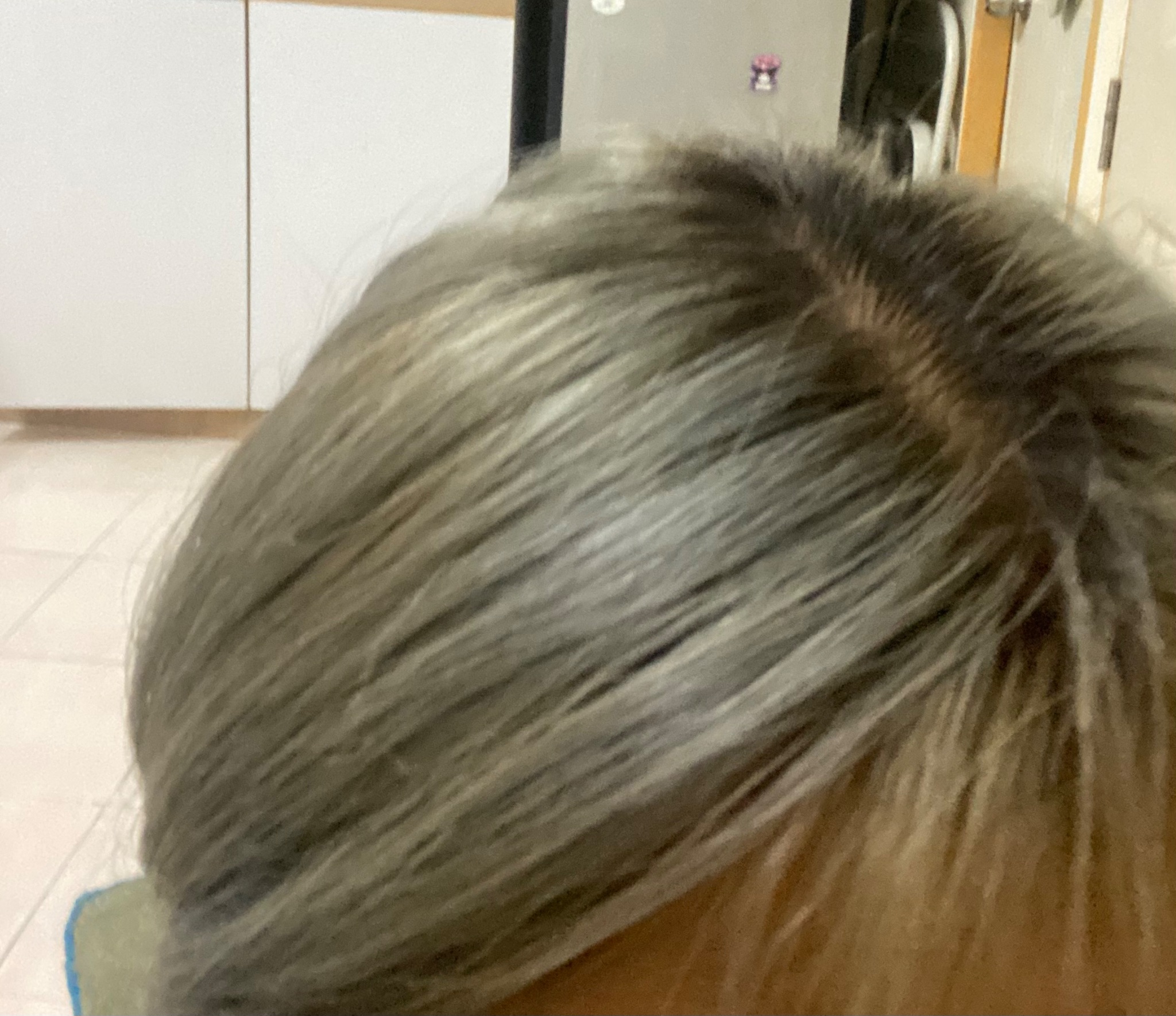 เนื่องจากย้อมสีผิดพลาดตอนนี้สีผมเลยเป็นสีนี้ เป็นเทาเขียวและไม่สม่ำเสมอไม่ค่อยถูกใจค่ะ เนื่องจากก่อนย้อมสีสว่างประมาณระดับ7ค่ะ