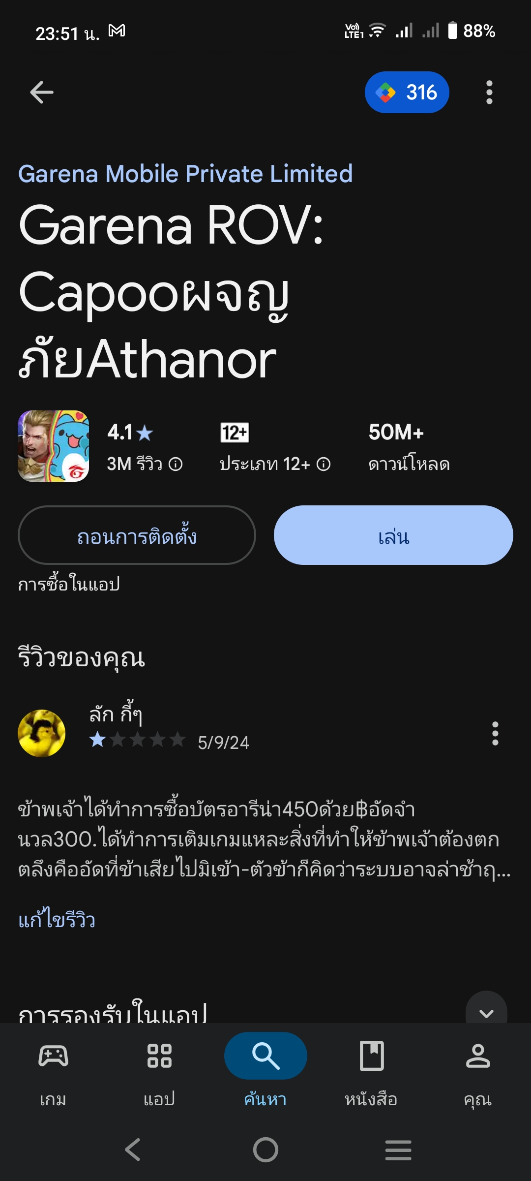 ผมซื้อบัตรGarena 450 Shell ในทูวอเล็ต และตรองรหัสผ่านทางเว็บไซต์อารีน่าตั้งแต่วันที่ 5/9/24 ผ่านมาถึง 3ตุลา2026ก็ไม่เข้า ผมไปบ่นให้เกมส์นิดเดียวเอง ดองผม2ปีเลย🥲