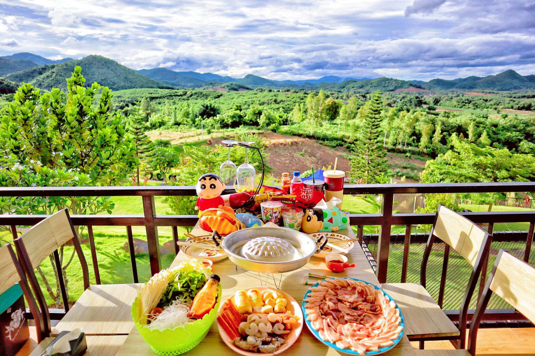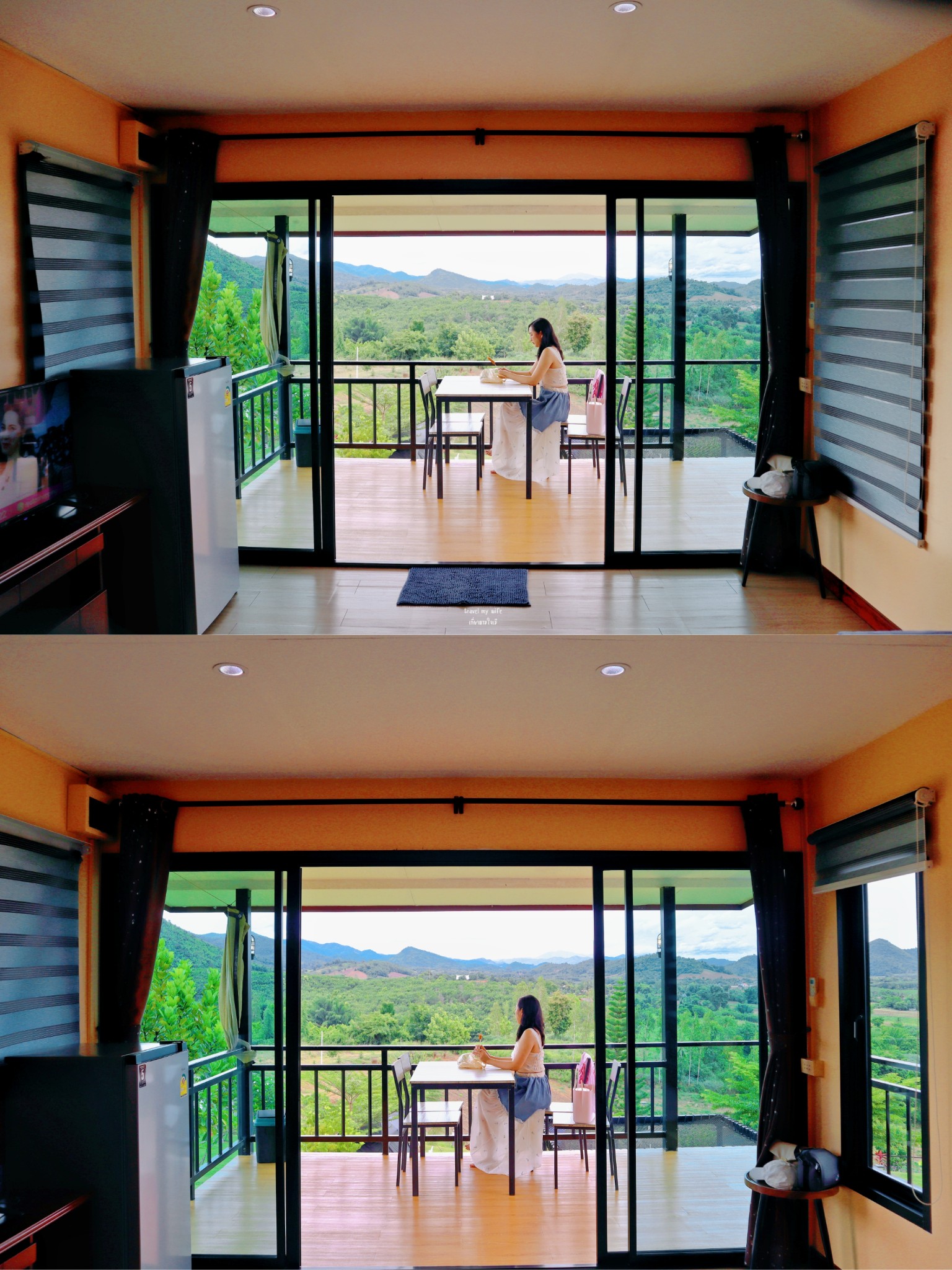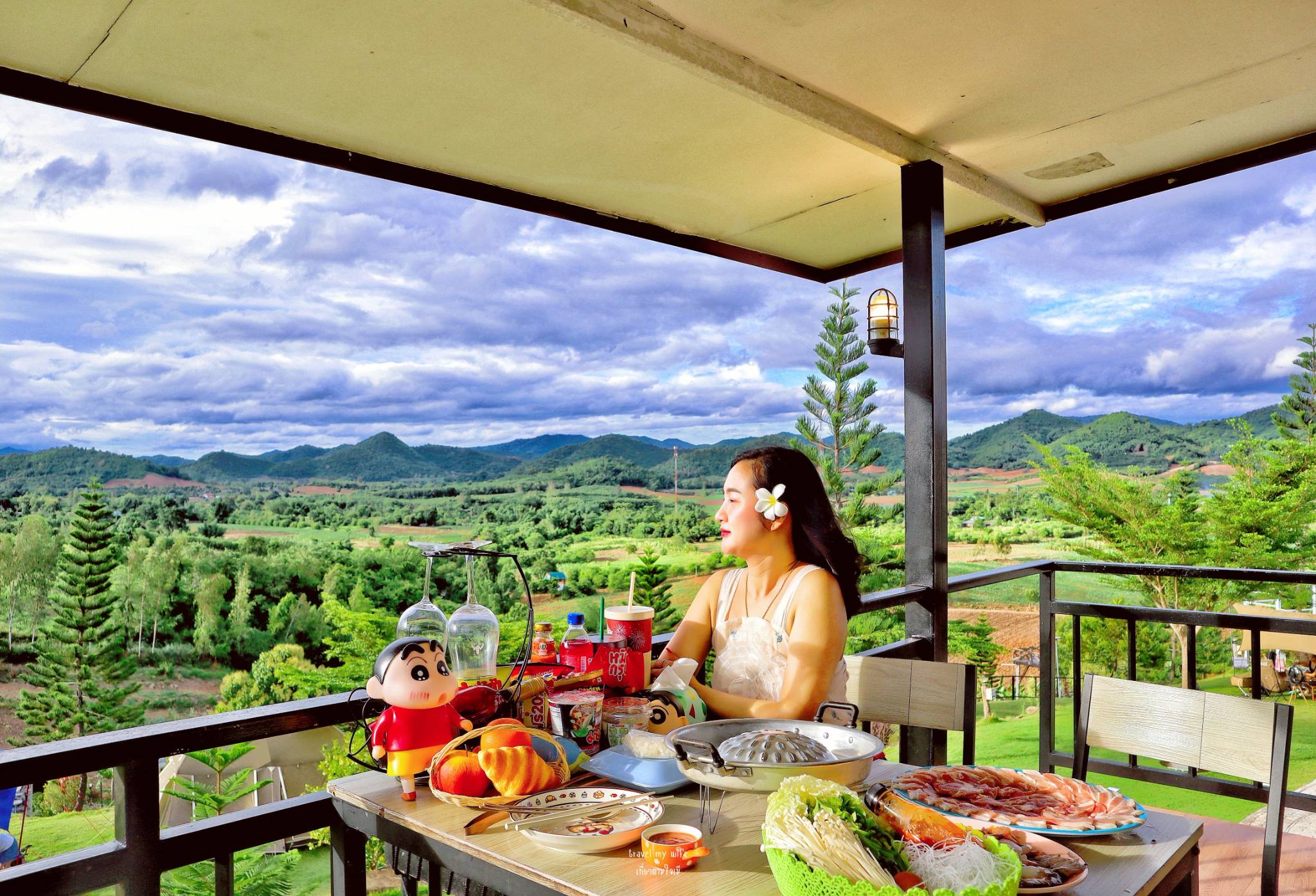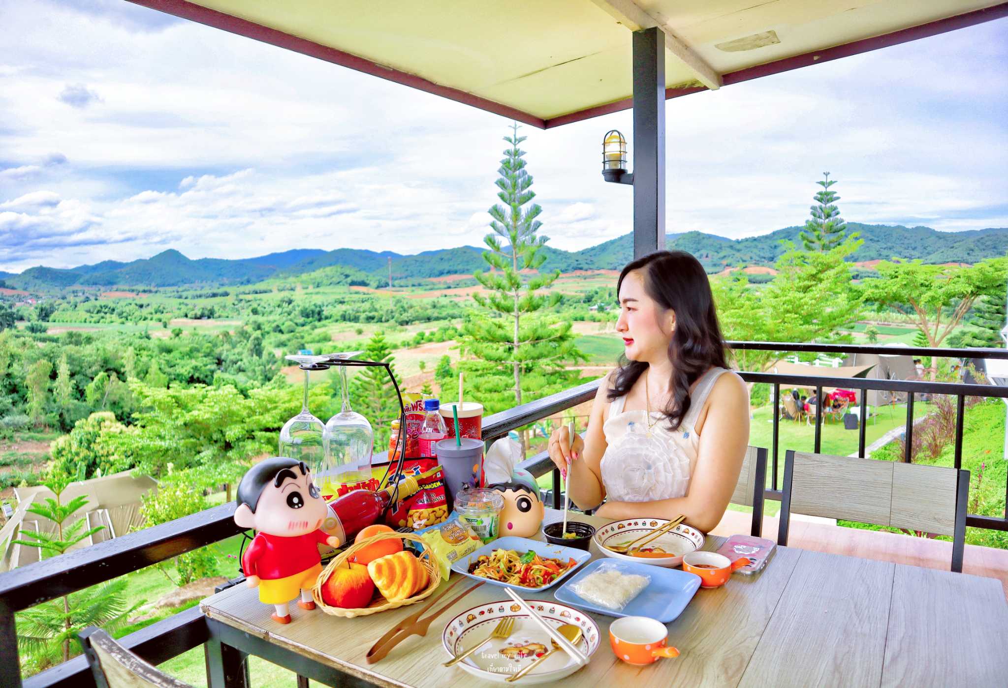 หลังที่เราพักคือบ้านท็อปวิว บ้านหลังใหญ่ อยู่บนเนินสูงมองเห็นวิวแบบสุดสายตา หลังนี้จะเห็นทั้งวิวพระอาทิตย์ตก และ พระอาทิตย์ขึ้นเลยนะ ช่วงไหนมีหมอก คือฟรุ้งมาก แต่เรามาคือ คลึ้มฟ้าฝน ไม่เจอหมอก แต่เจออากาศที่เย็นสบาย หายใจได้เต็มปอด แค่นี้ก็สุขใจแล้ว