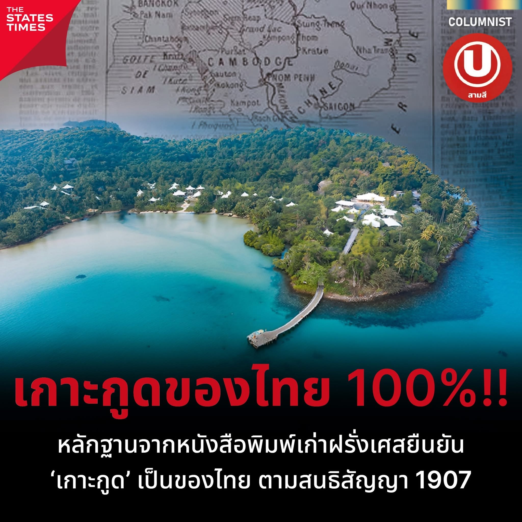(3 ต.ค. 68) เพจเฟซบุ๊ก ปราชญ์ สามสี โพสต์ถึงเรื่องราวการค้นคว้าทางประวัติศาสตร์เกี่ยวกับสิทธิของสยามเหนือเกาะกูด ทำให้เราได้พบเอกสารร่วมสมัยที่มีคุณค่ามาก ทั้งจากหนังสือพิมพ์ฝรั่งเศสในยุคอาณานิคมและเอกสารสนธิสัญญาทางการ ซึ่งต่างก็ยืนยันในสาระเดียวกัน