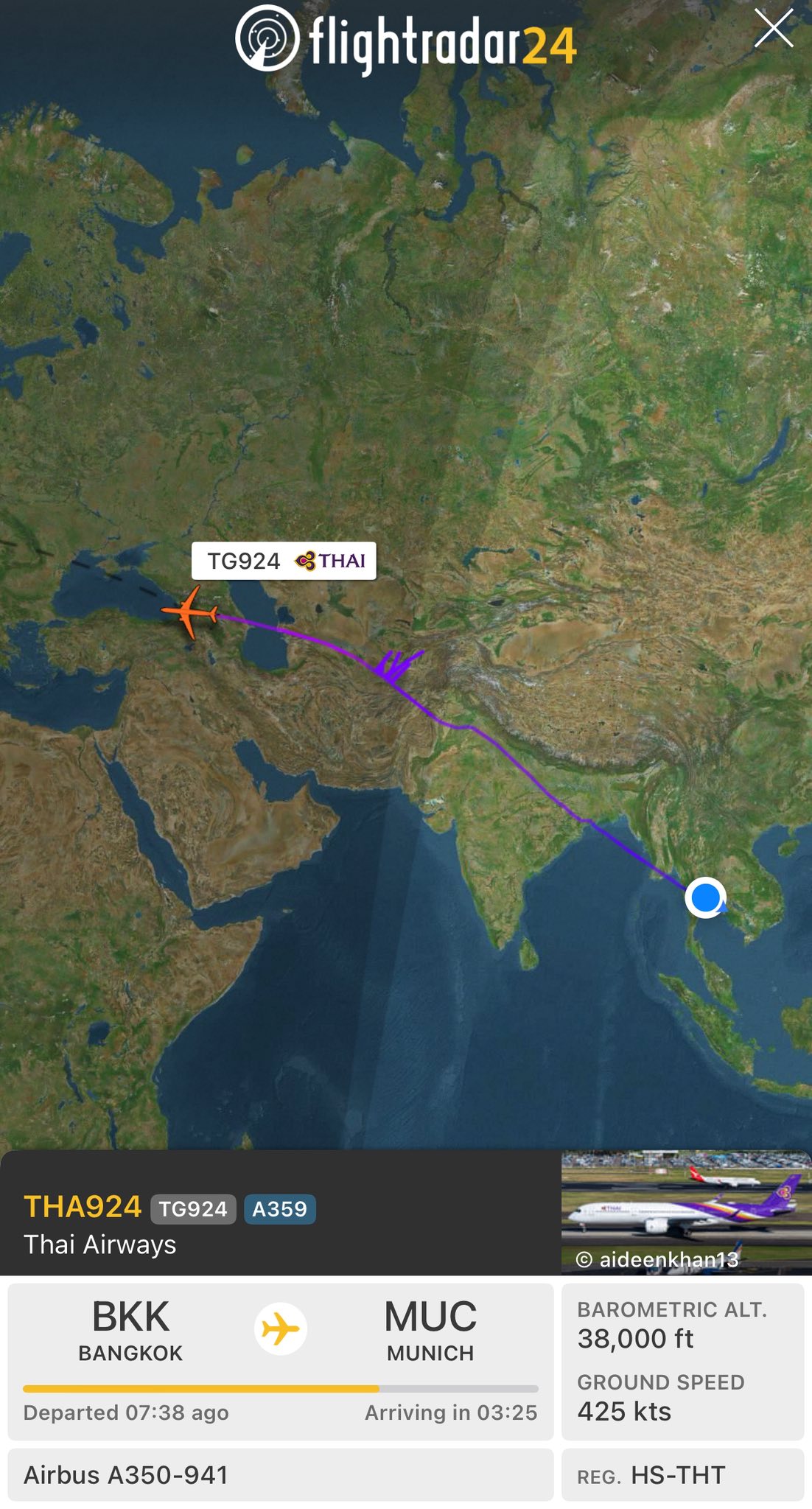 ใครที่เป็นห่วงสำหรับเที่ยวบิน TG 924 การบินไทยยังอยู่ในเส้นทางนะครับ มุ่งหน้าตรงสูงมิวนิค “เอาใจช่วยครับ”
