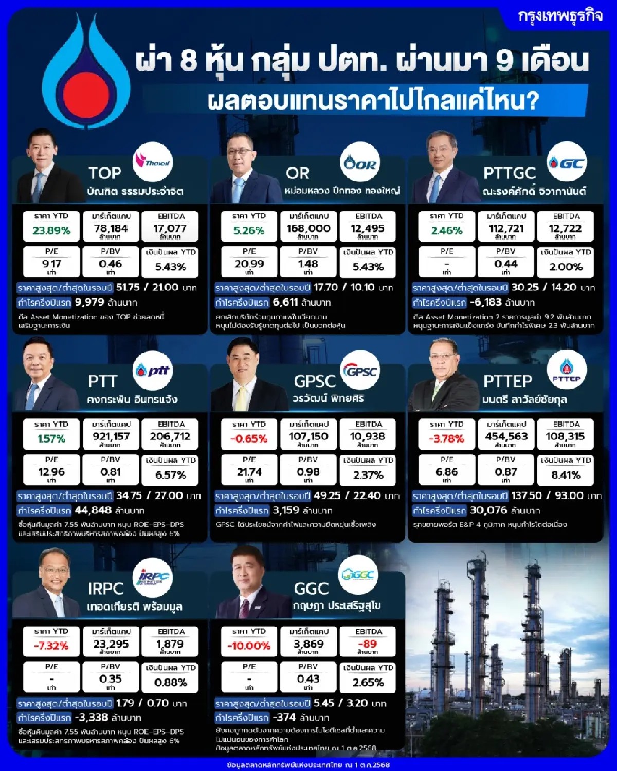 ผ่า 8 หุ้น กลุ่มปตท. ผ่านมา 9 เดือน ผลตอบแทนราคาไปไกลแค่ไหน?